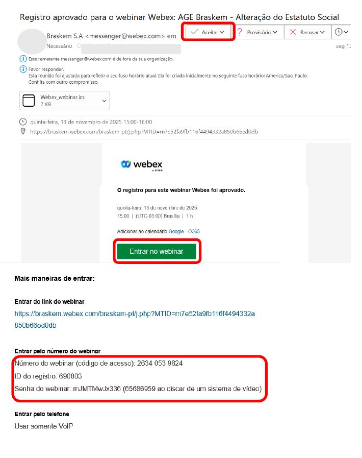 In order to have access to the Meeting, Shareholders must request an access link to the Meeting via email to braskem-ri@braskem.com, by November 11, 2025. The request must be accompanied by the necessary documents to participate in the meeting. Meeting, which were duly indicated in the Call Notice, in the Management Proposal and in this Manual for Participation in the Meeting.