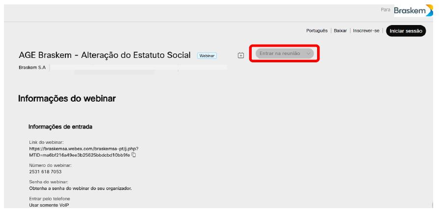 The Digital Platform is available for use via computer (desktop or laptops and the like) and via cell phone, through the Webex app, for Apple and Android phones. The Participant who chooses to participate in the Meeting via cell phone must download the Webex application on his mobile phone.