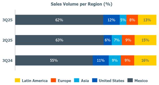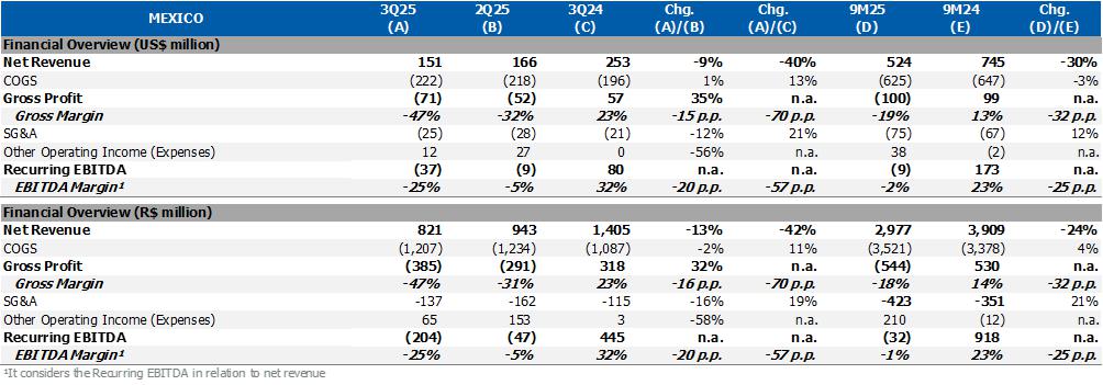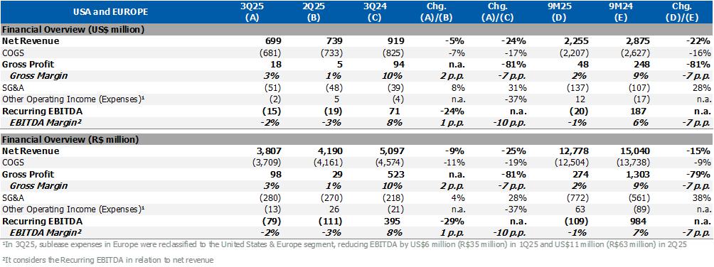 Disregarding such non-recurring effects, the Brazil/South America segment recorded gross margin and Recurrent EBITDA higher by 3 p.p. and 35%, respectively, in relation to 2Q25.
