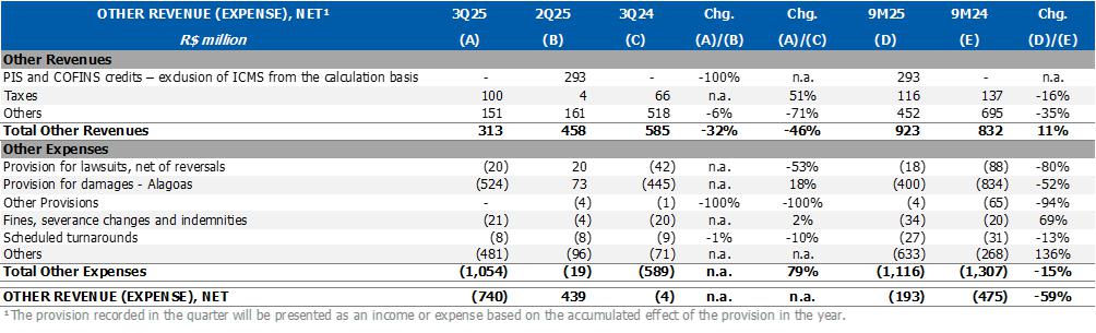 For more information, please check explanatory note 23 ("Geological event – Alagoas") of the consolidated and individual Financial Statements as of September 30, 2025.