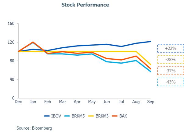 In relation to 3Q24, the reduction (-9%) is mainly explained by (i) lower PP sales volume (-15%) due to lower demand in the Brazilian market by 11%; and (ii) the lower sales volume of PE (-5%) and PVC (-11%) explained by the strategy of prioritizing sales with higher added value.