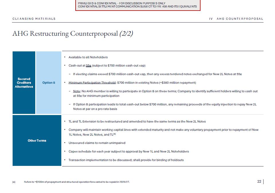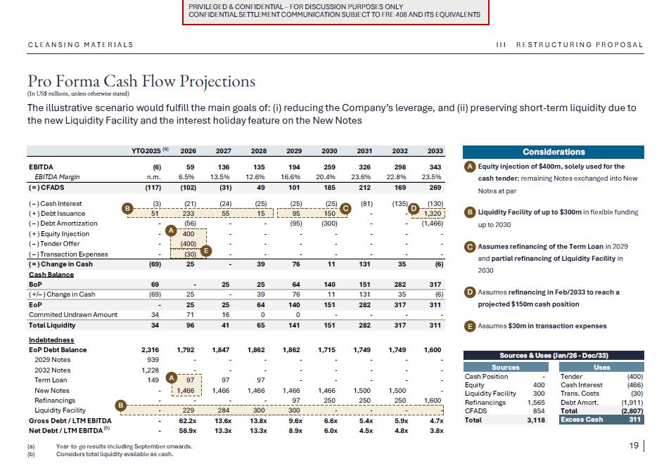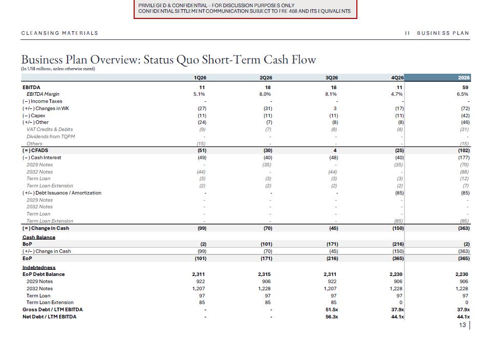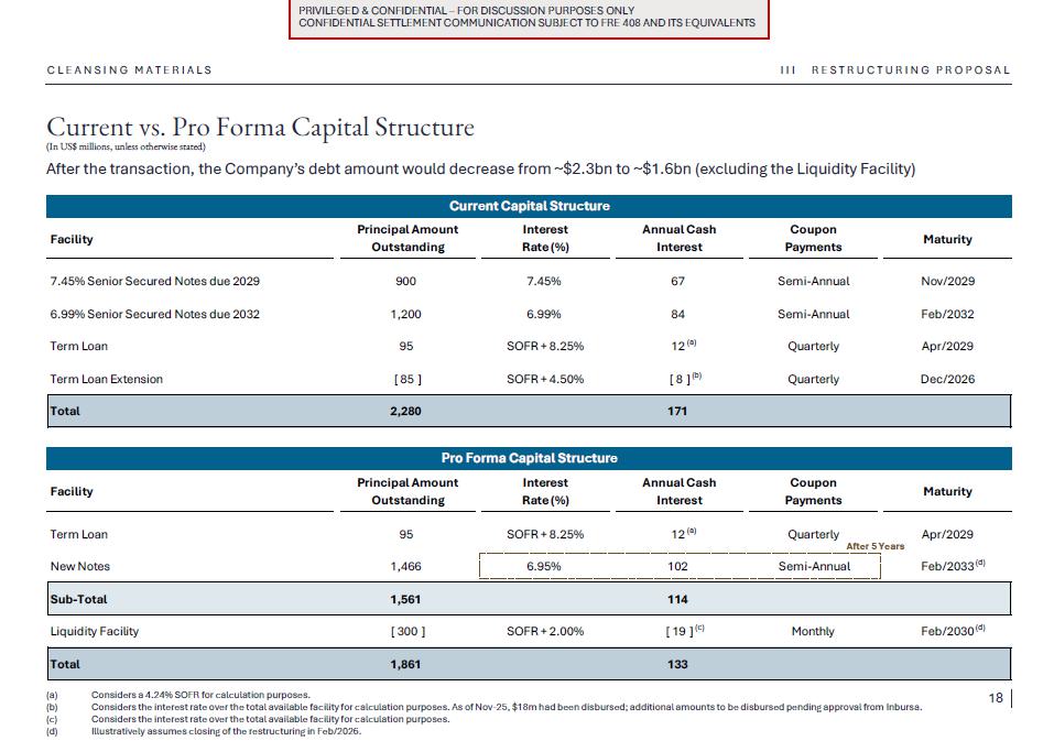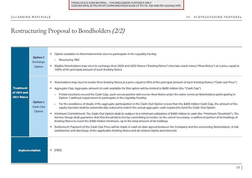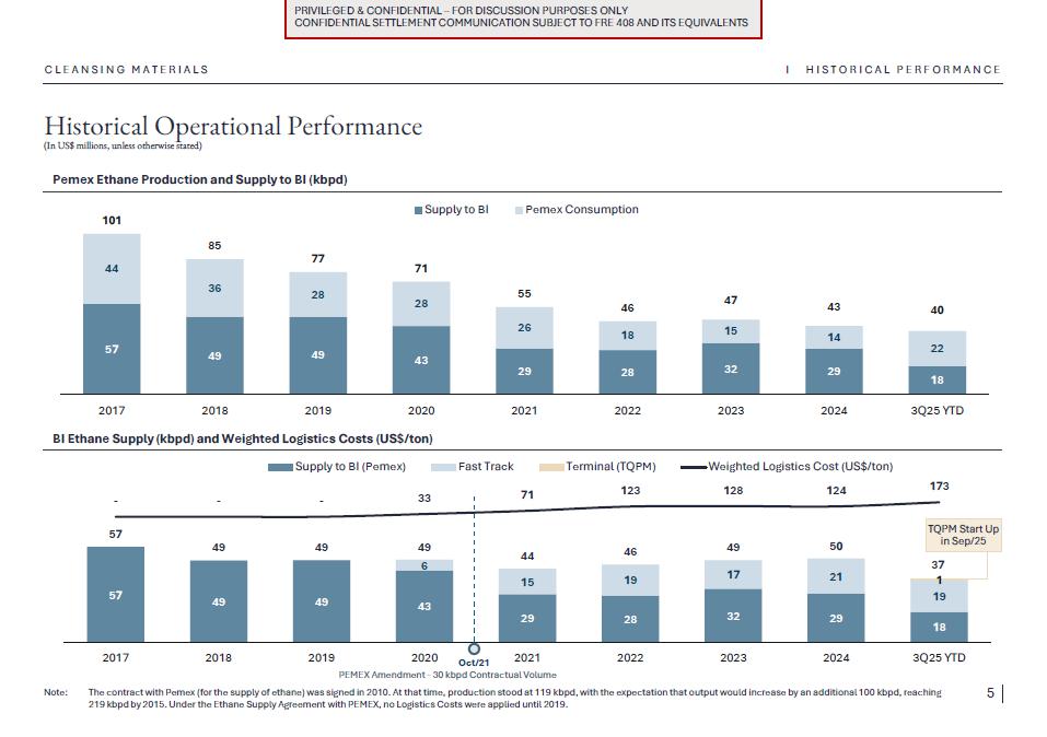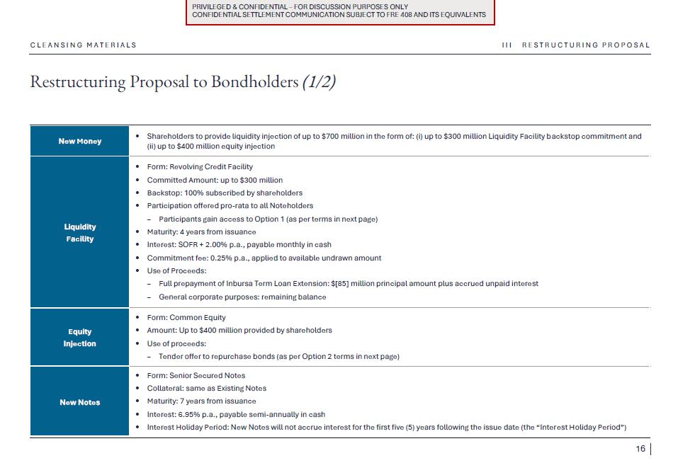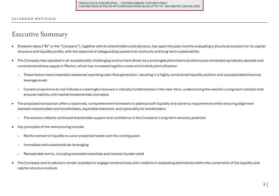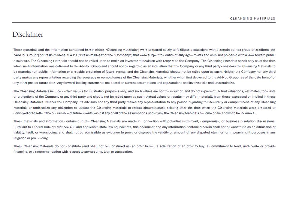 1.Discussion materials from Braskem Idesa and proposed terms for a possible restructuring (“Braskem Idesa Proposal”); and