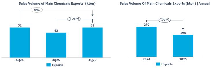 Exports of main chemicals remained in line with 4Q24.