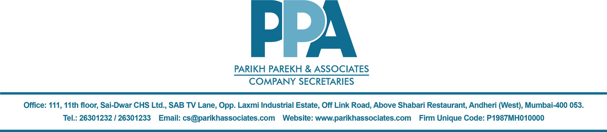I, P. N. Parikh, of M/s Parikh Parekh & Associates, Practising Company Secretaries (Membership No. FCS 327), having my office at 111, 11th Floor, Sai Dwar CHS Ltd., Sab TV Lane, Opp. Laxmi Industrial Estate, Off Link Road, Andheri (West), Mumbai - 400053, have been appointed as the Scrutinizer to scrutinize the evoting process for the Postal Ballot through electronic voting (‘remote e-voting’) conducted by the Company in respect of the following Special Resolution: