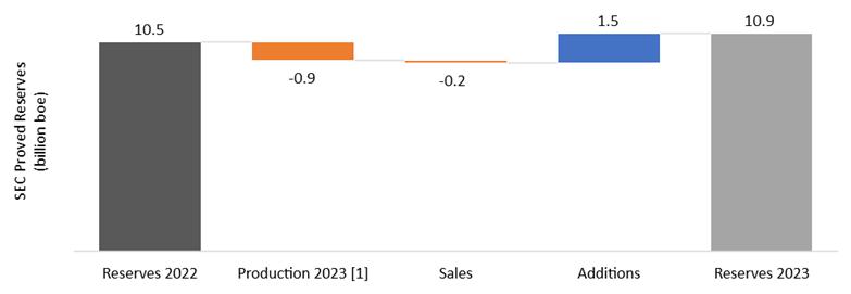 Petrobras also estimates reserves according to the ANP/SPE (National Agency of Petroleum, Natural Gas and Biofuels / Society of Petroleum Engineers) definitions. As of December 31, 2023, the proved reserves according to these definitions reached 11.1 billion barrels of oil equivalent (boe). The differences between the reserves estimated by ANP/SPE definitions and those estimated using SEC regulation are mainly due to different economic assumptions and the possibility of considering as reserves the volumes expected to be produced beyond the concession contract expiration date in fields in Brazil according to ANP reserves regulation.