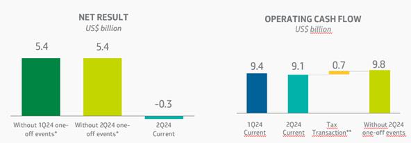 “Petrobras maintained robust cash generation in the second quarter of 2024, which allowed it to make US$ 3 billion in investments, comply with our shareholder remuneration policy and pay dividends. The net result for the quarter should be analyzed in light of events that impacted the accounting result but had no relevant impact on the company's cash flow. The main events were the exchange rate variation for the period - an effect between companies in the Petrobras System that has no cash effect or even equity effect - and the impact of adhering to the tax transaction - a decision deemed positive by the market because it ended billion-dollar disputes that brought great uncertainty to the company's cash flow. Without these events, net income for 2Q24 would have reached US$ 5.4 billion and EBITDA would have been US$ 12 billion, in line with the previous quarter”. Fernando Melgarejo, Chief Financial and Investor Relations Officer