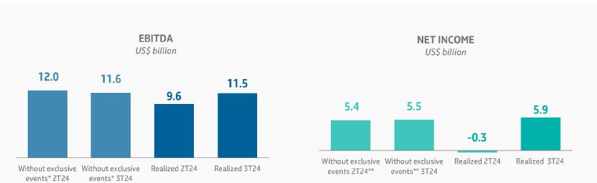 In 3Q24, we posted solid results, despite a challenging external scenario. Recurring Adjusted EBITDA reached US$ 11.6 billion and recurring net income was US$ 5.9 billion.