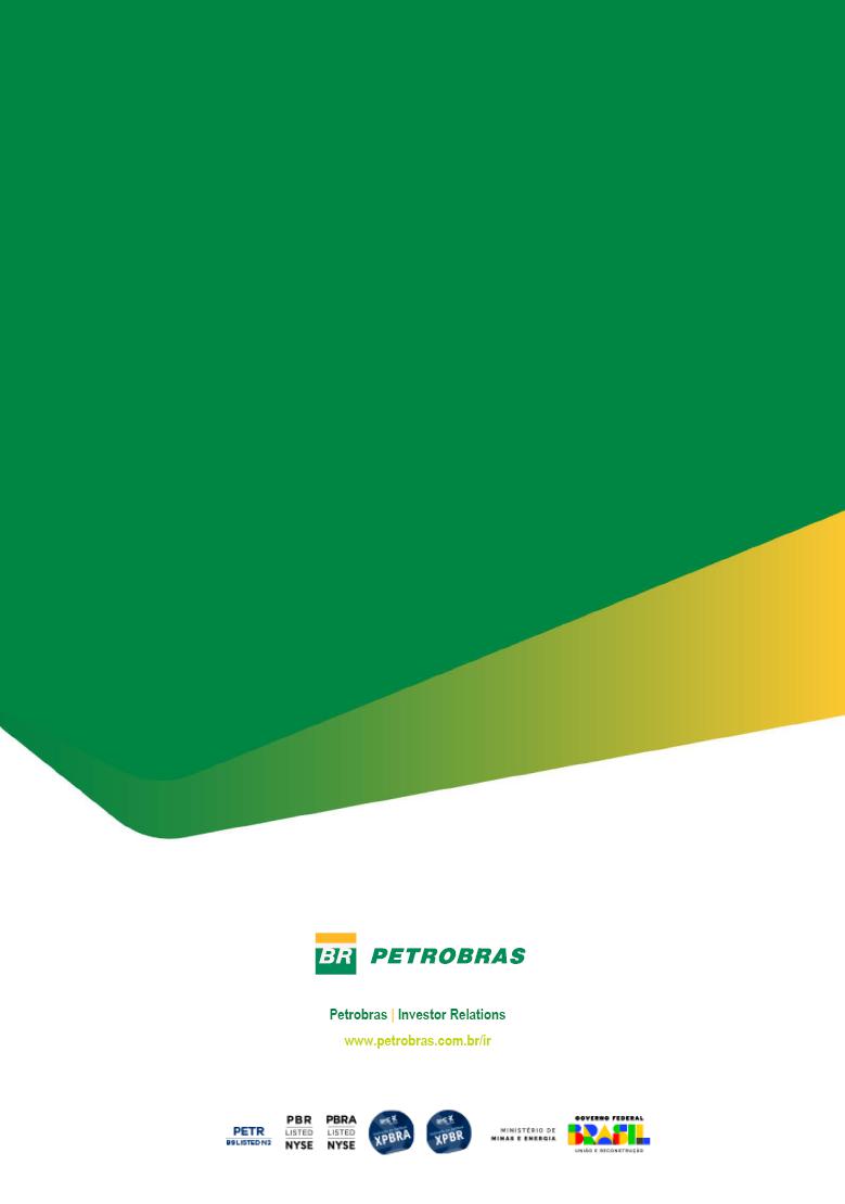 Evidence of this commitment is reflected in the early start-up of Maria Quitéria FPSO. Exactly 15 days later, FPSO Marechal Duque de Caxias started operating on October 30. Also in October, FPSO Almirante Tamandaré arrived in Brazil. This effort to execute and even anticipating deadlines deadlines will translate into accelerated revenue generation as these assets reach full capacity and in the increased supply of energy to the country. We are committed to Petrobras' growth and to creating value for shareholders and Brazilian society." Fernando Melgarejo, Chief Financial and Investor Relations Officer