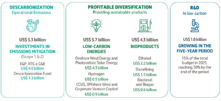 Regarding Low Carbon Energies (scope 3), the approved plan considers projects and research in the following segments: onshore renewable generation (wind/solar); bioproducts (ethanol, biodiesel, and biomethane); low-carbon hydrogen; carbon capture, utilization and storage (CCUS); etc.