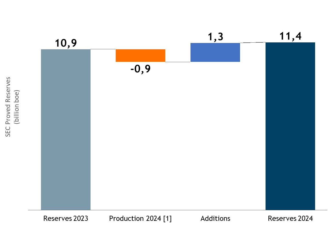 In 2024, Petrobras followed the trajectory of reserves addition (1.3 billion boe), with a reserve replacement rate (IRR) of 154%, focusing on profitable assets and keeping alignment with the search for a just energy transition, generating value for society and shareholders.