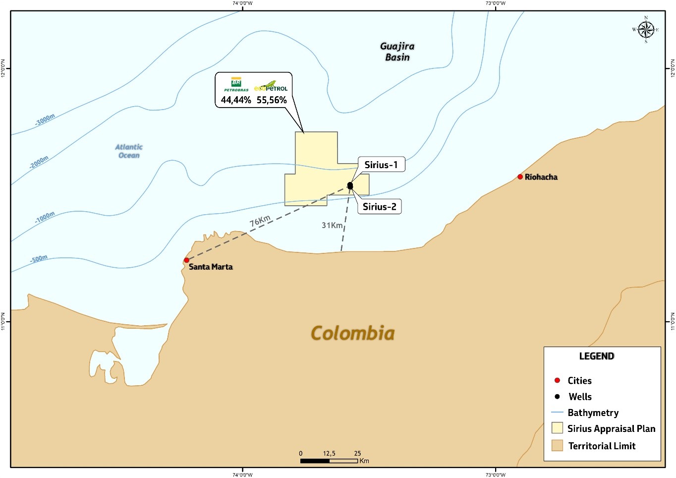 Petrobras, through its wholly-owned subsidiary Petrobras International Braspetro B.V – Sucursal Colombia (PIB-COL), acts as the operator of the consortium (44,44% share), jointly with Ecopetrol (55,56% share). The consortium will continue to evaluate the results obtained from the drilling of Sirius-1 and Sirius-2 wells, according to planning and contractual obligations with the Agencia Nacional de Hidrocarburos (ANH) from Colombia.