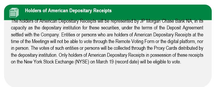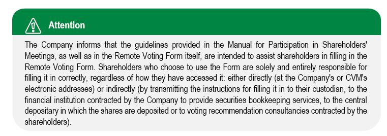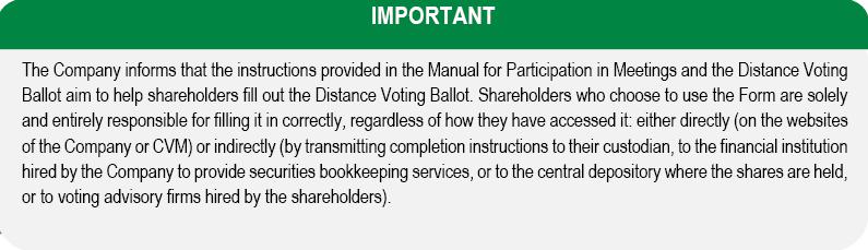 All necessary information for shareholders to participate in the Meetings and exercise their voting rights is available in this Shareholders' Meeting Participation Manual (“Manual”), which contains the Management Proposals and the guidelines for attending and voting in the Meetings.
