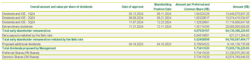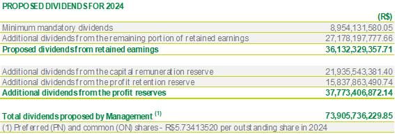 Art. 57- Once the distribution of the minimum dividend referred to in art. 8 of these Bylaws is decided, the General Meeting, in compliance with the terms of corporate legislation and specific federal norms, may assign specific percentages or gratuity to the members of the Executive Board of the Company, as variable remuneration.
