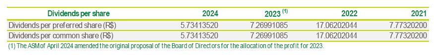 Art. 4 – The Share Capital is R$ 205,431,960,490.52 (two hundred five billion, four hundred thirty- one million, nine hundred sixty thousand, four hundred ninety reais and fifty-two cents), divided into13,044,496,930 (thirteen billion, forty-four million, four hundred ninety-six thousand, nine hundred thirty) shares without nominal value, comprising 7,442,454,142 (seven billion, four hundred forty-two million, four hundred fifty-four thousand, one hundred forty-two) common shares and 5,602,042,788 (five billion, six hundred two million, forty-two thousand, seven hundred eighty-eight) preferred shares. Art. 4 – The Share Capital is R$ 205,431,960,490.52 (two hundred five billion, four hundred thirty- one million, nine hundred sixty thousand, four hundred ninety reais and fifty-two cents), divided into13,044,496,930 (thirteen billion, forty-four million, four hundred ninety-six thousand, nine hundred thirty) 12.888.732.761 (twelve billion, eight hundred eighty-eight million, seven hundred thirty-two thousand and seven hundred sixty-one) shares without nominal value, comprising 7,442,454,142 (seven billion, four hundred forty-two million, four hundred fifty-four thousand, one hundred forty-two) 7.442.231.382  (seven billion, four hundred forty-two million, two hundred thirty-one thousand and three hundred eighty-two) common shares and 5,602,042,788 (five billion, six hundred two million, forty-two thousand, seven hundred eighty-eight) 5.446.501.379 (five billion, four hundred forty-six million, five hundred one thousand and three hundred seventy-nine) preferred shares.