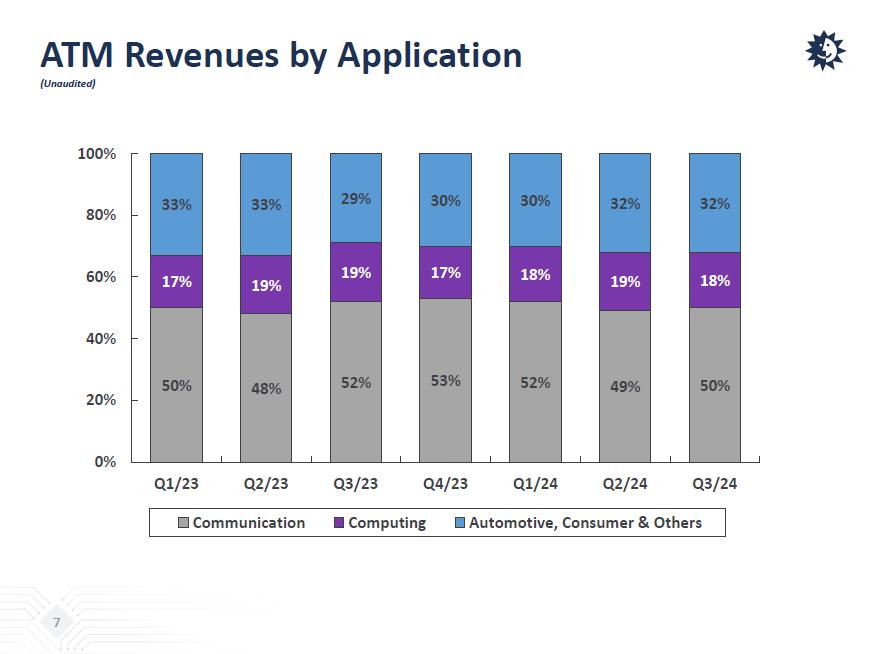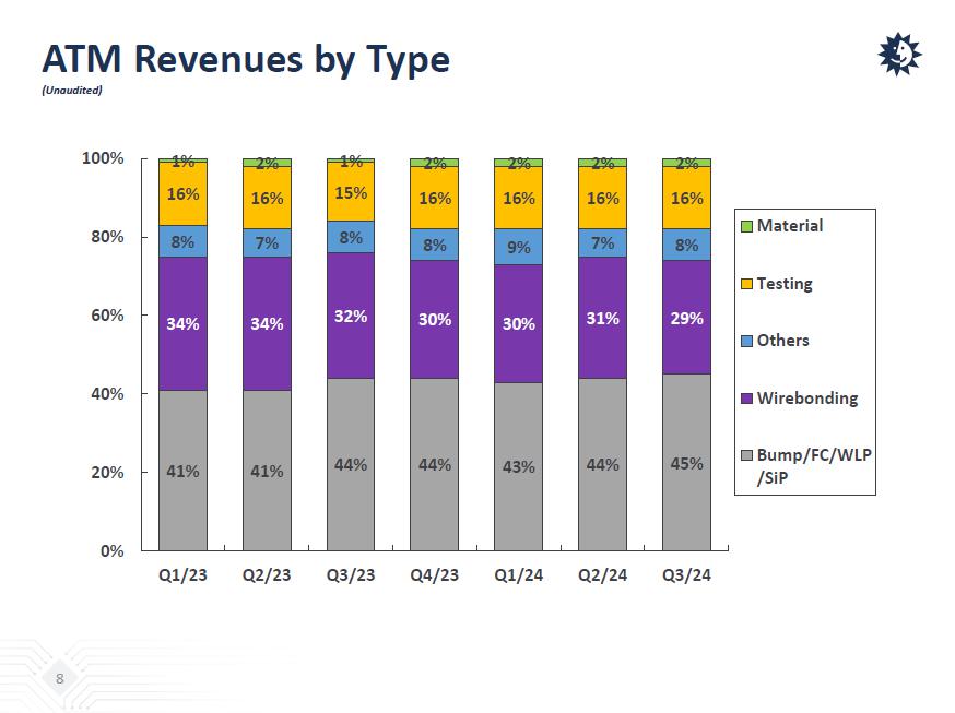 ATM Revenues by Application (Unaudited) 7 50% 48% 52% 53% 52% 49% 17% 19% 19% 17% 18% 19% 33% 33% 29% 30% 30% 32% 0% 20% 40% 60% 80% 100% Q1/23 Q2/23 Q3/23 Q4/23 Q1/24 Q2/24 Communication Computing Automotive, Consumer & Others