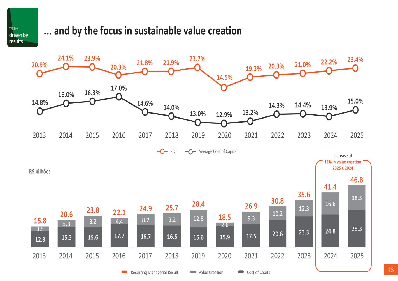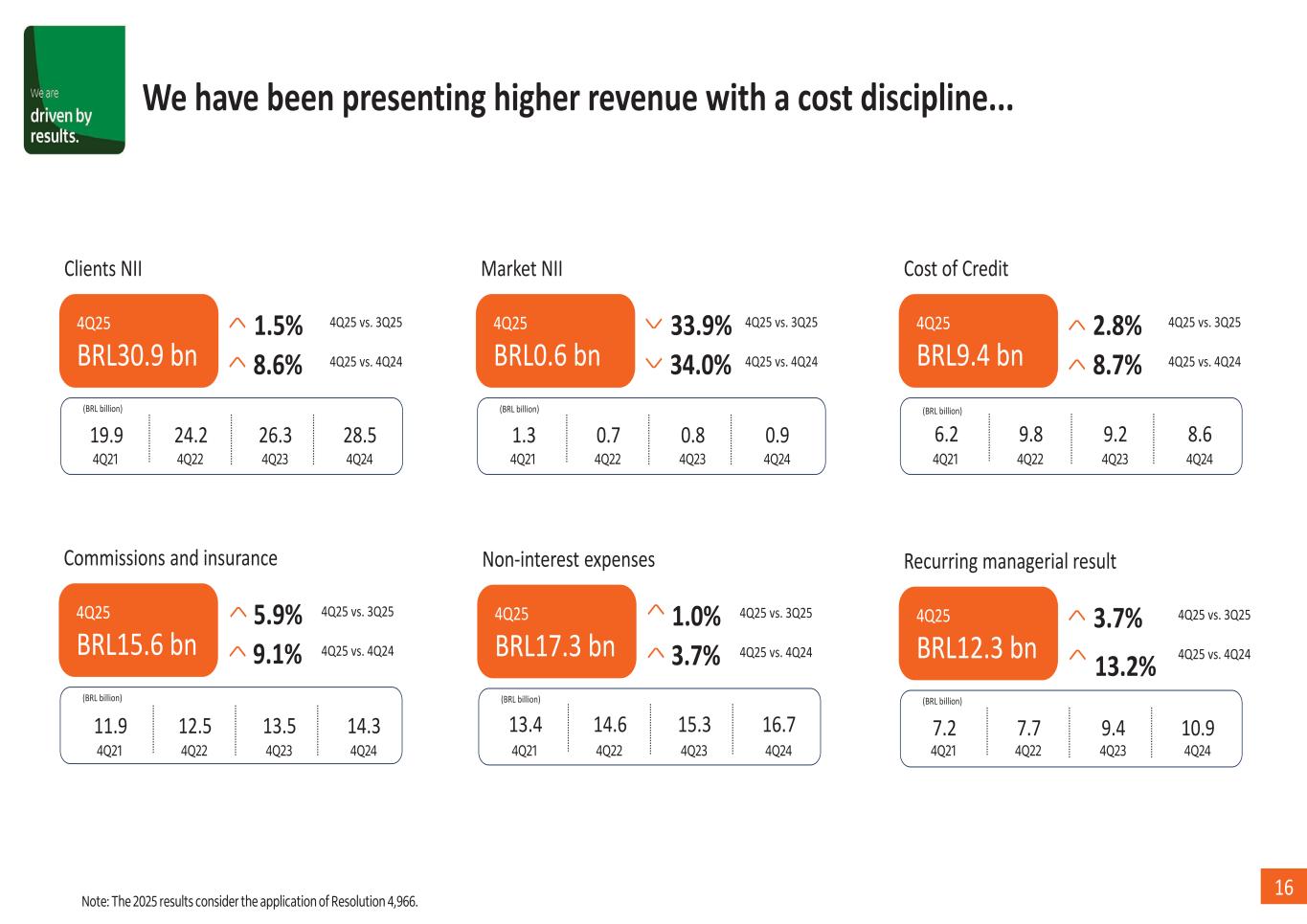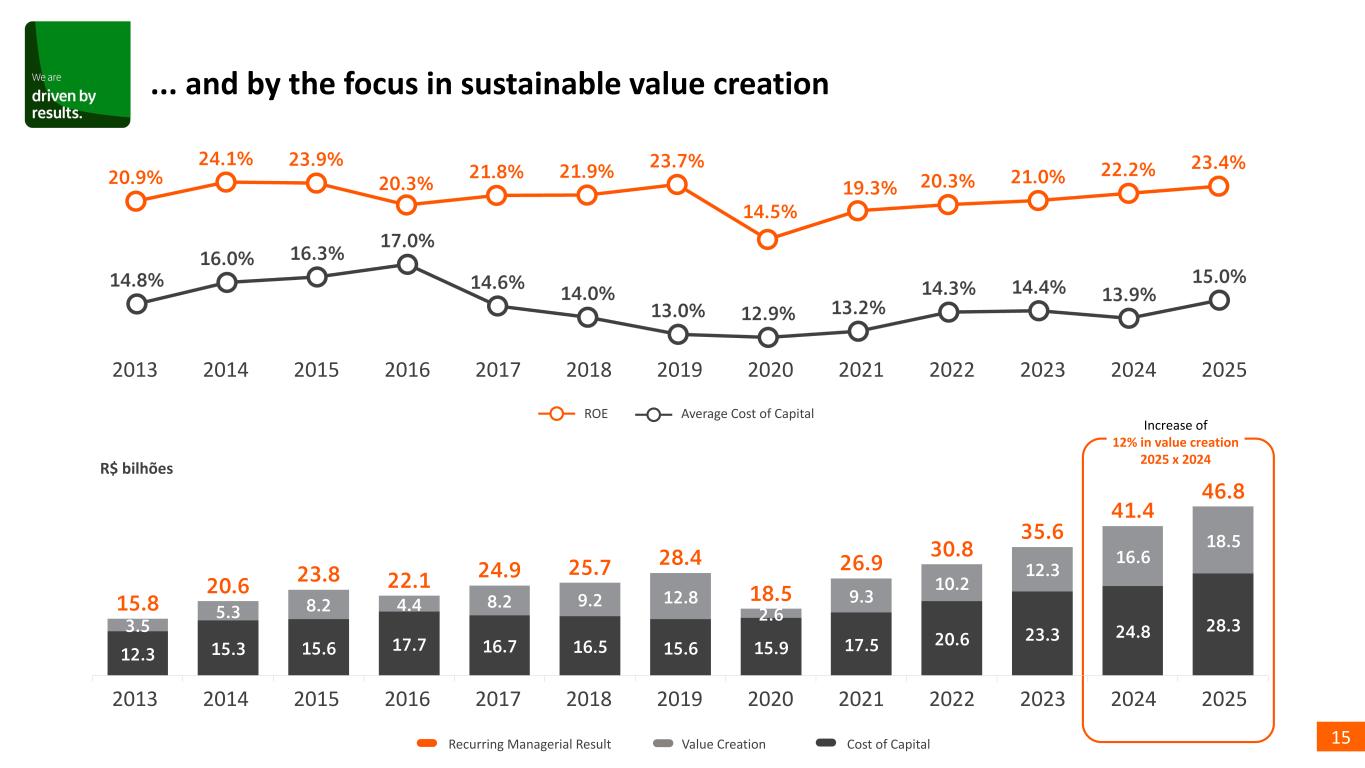 15 ... and by the focus in sustainable value creation Average Cost of CapitalROE Recurring Managerial Result Value Creation Cost of Capital R$ bilhões 2013 2014 2015 2016 2017 2018 2019 2020 2021 2022 2023 2024 2025 2013 2014 2015 2016 2017 2018 2019 2020 2021 2022 2023 2024 2025 Increase of 12% in value creation 2025 x 2024