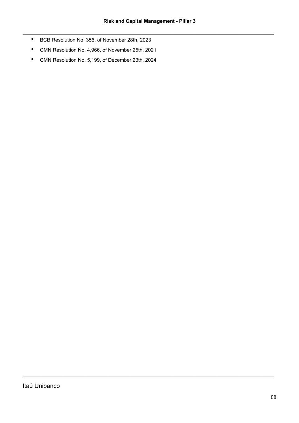 Risk and Capital Management - Pillar 3 __________________________________________________________________________________________ __________________________________________________________________________________________ Itaú Unibanco 88 • BCB Resolution No. 356, of November 28th, 2023 • CMN Resolution No. 4,966, of November 25th, 2021 • CMN Resolution No. 5,199, of December 23th, 2024