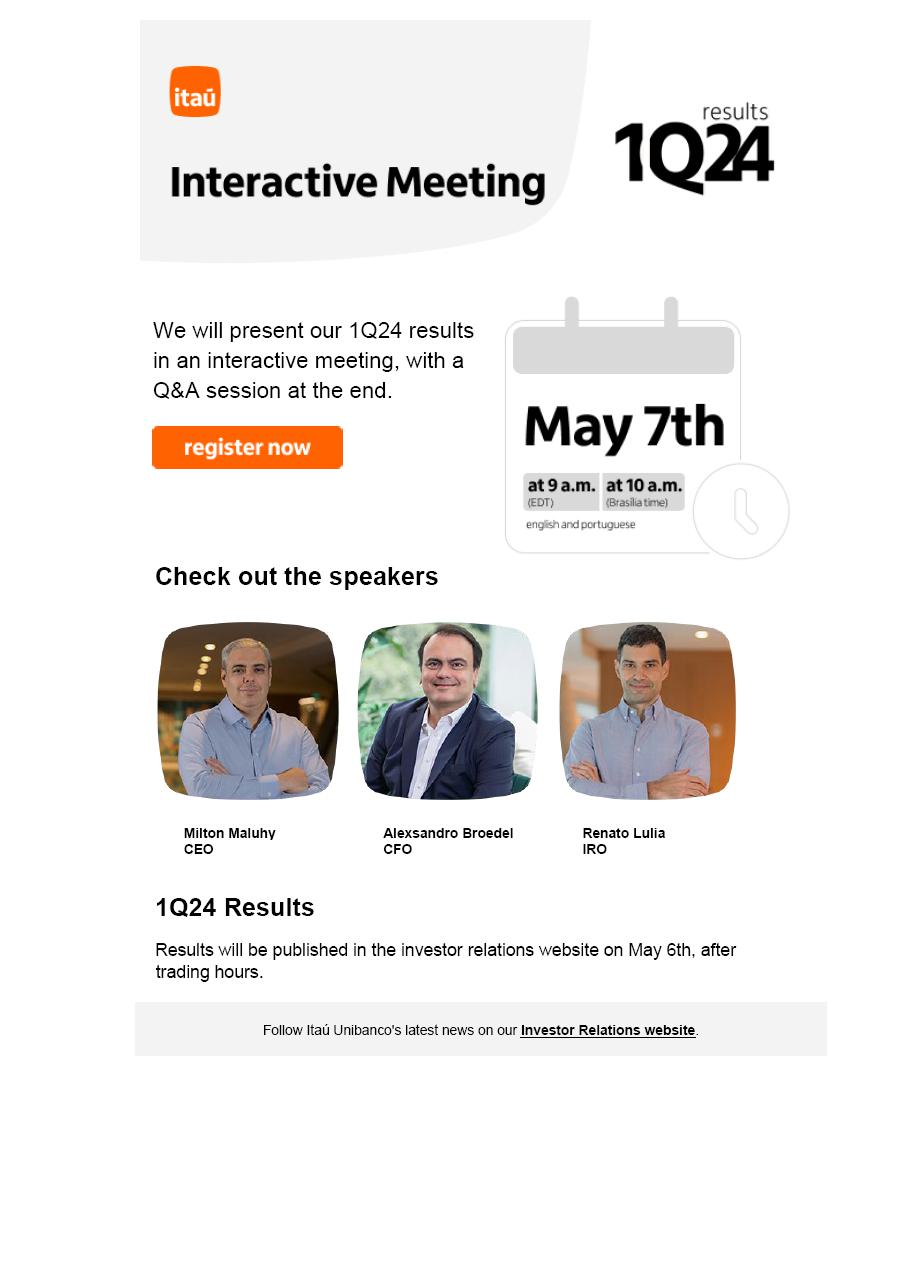 ITAÚ UNIBANCO - ANNOUNCEMENT TO THE MARKET - 1Q24 Interactive meeting