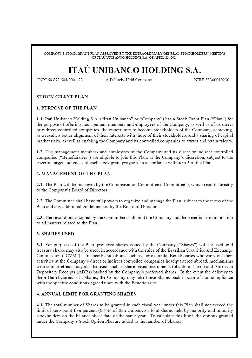 STOCK GRANT PLAN