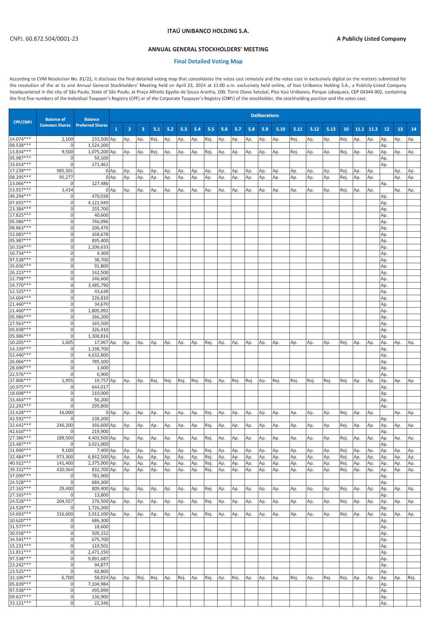 ANNUAL GENERAL STOCKHOLDERS’ MEETING Final Detailed Voting Map