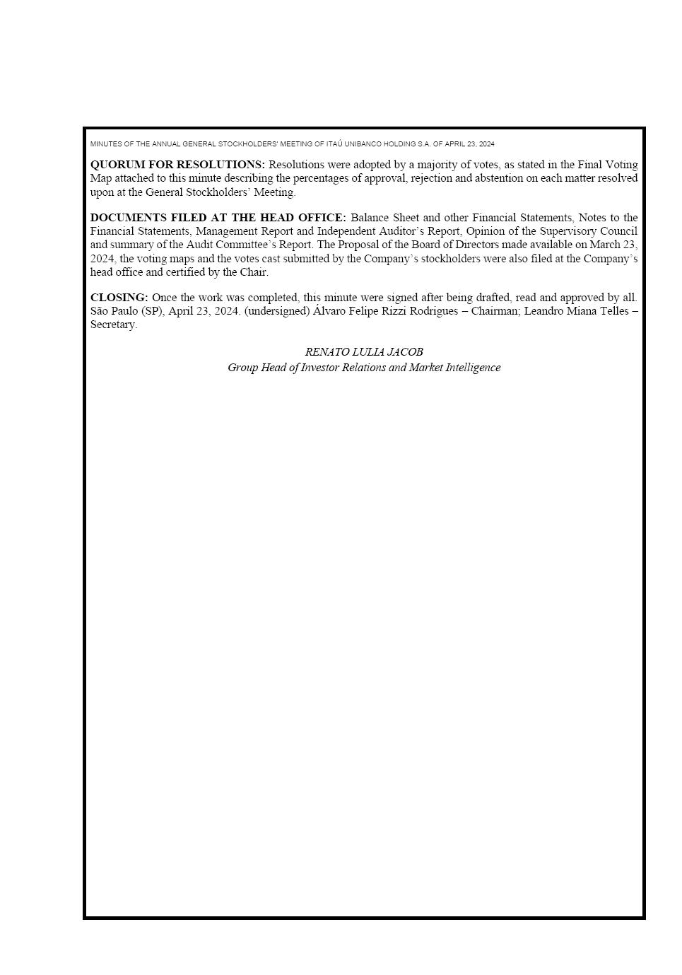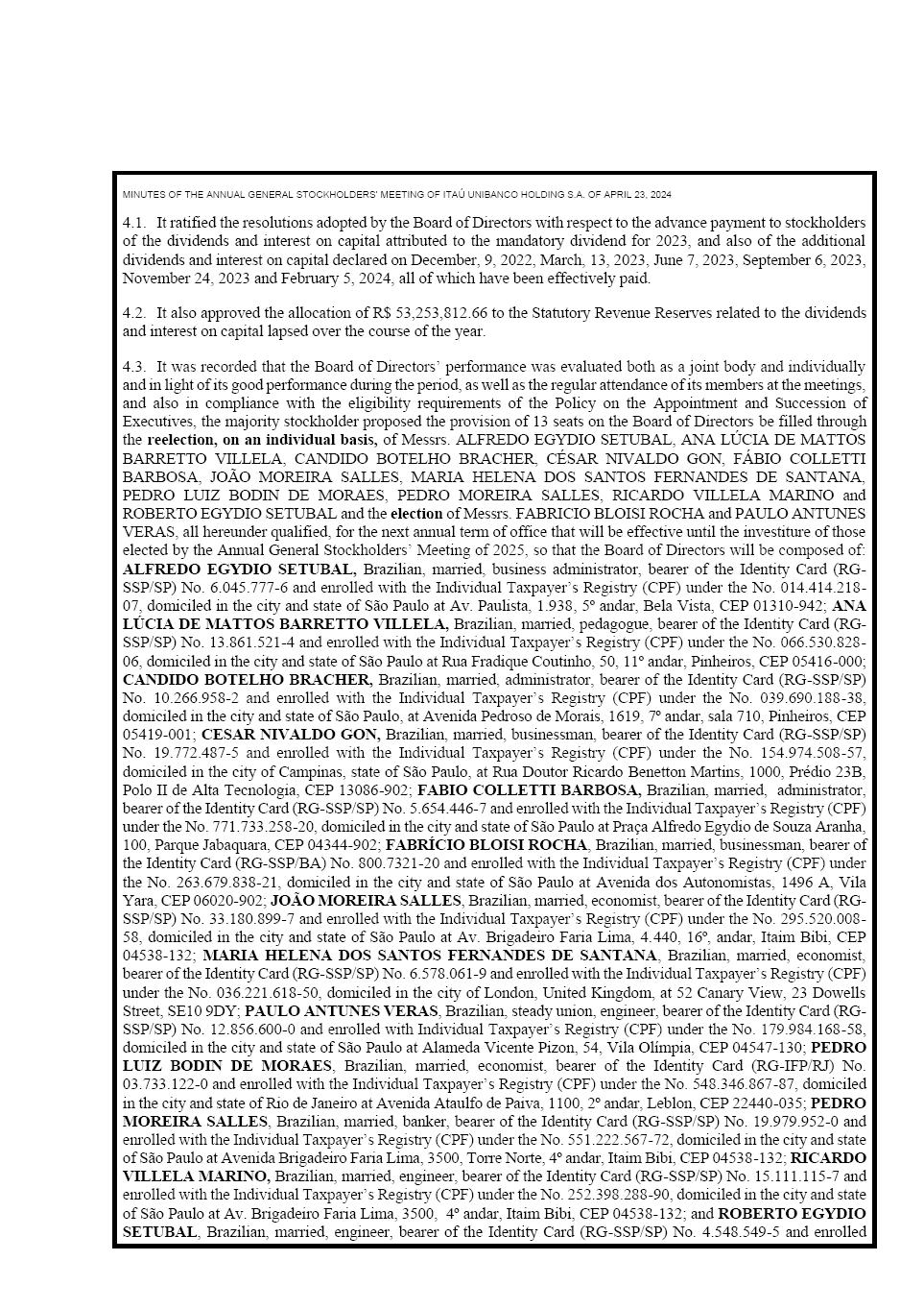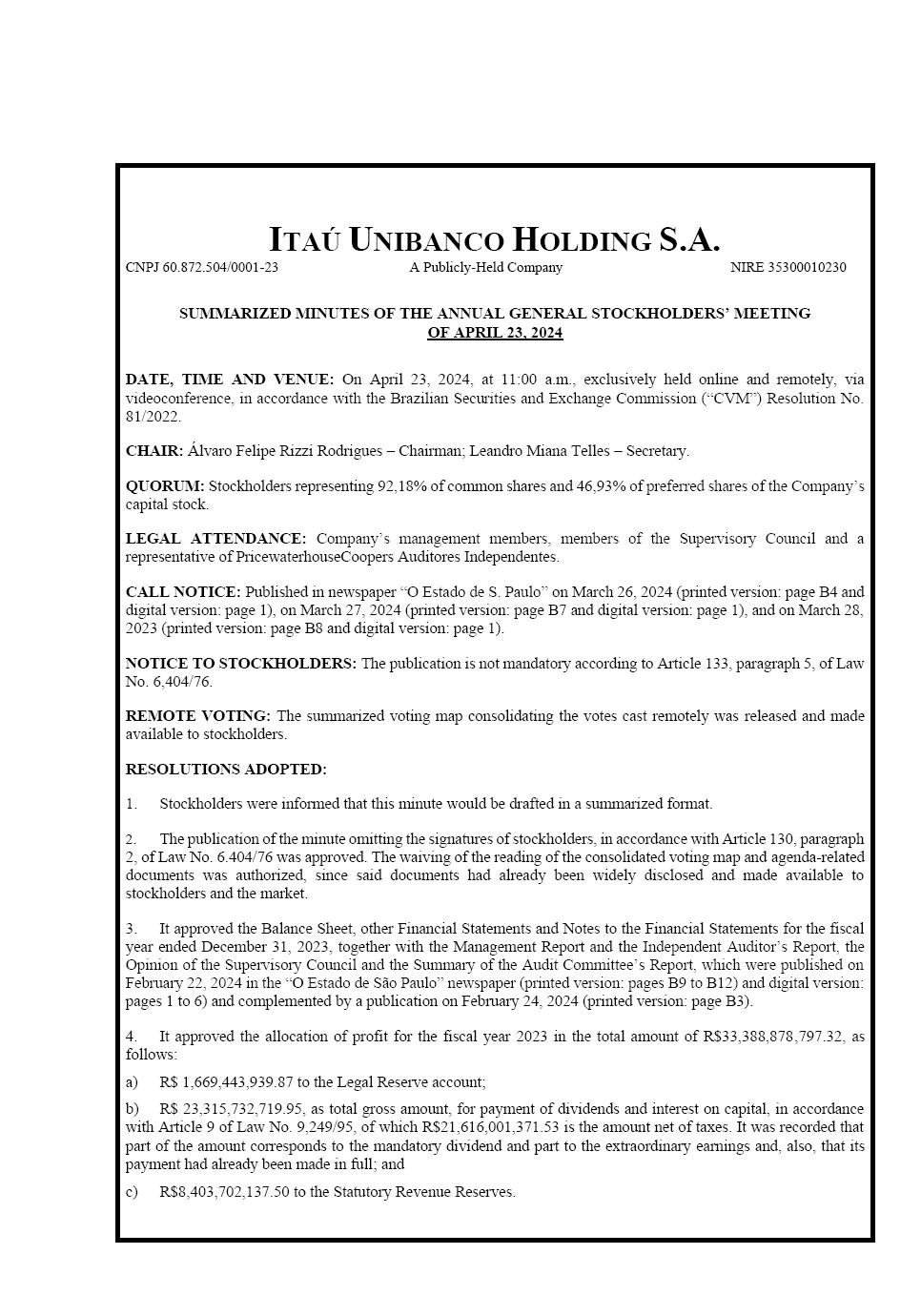 SUMMARIZED MINUTES OF THE ANNUAL GENERAL STOCKHOLDERS’ MEETING OF APRIL 23, 2024