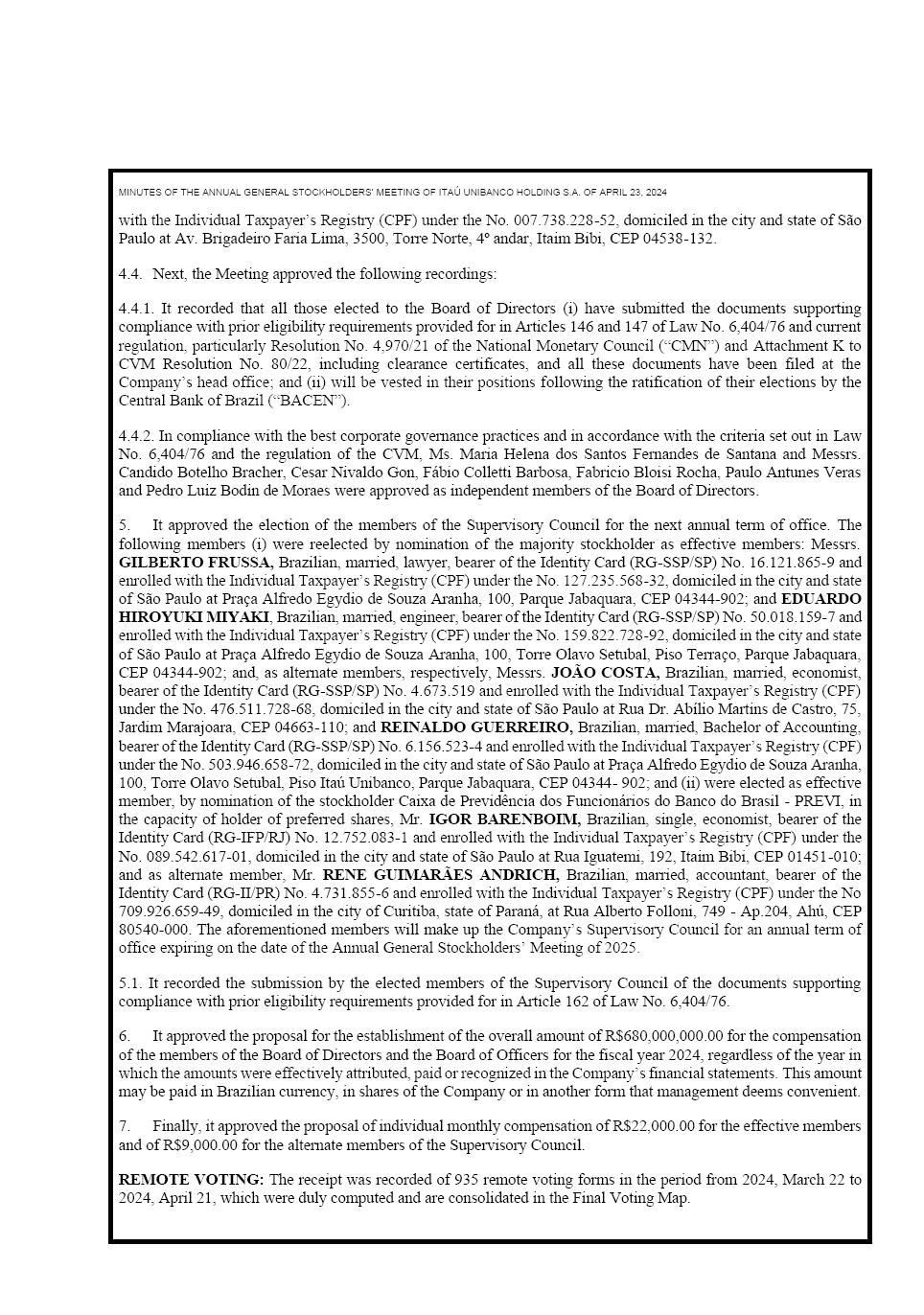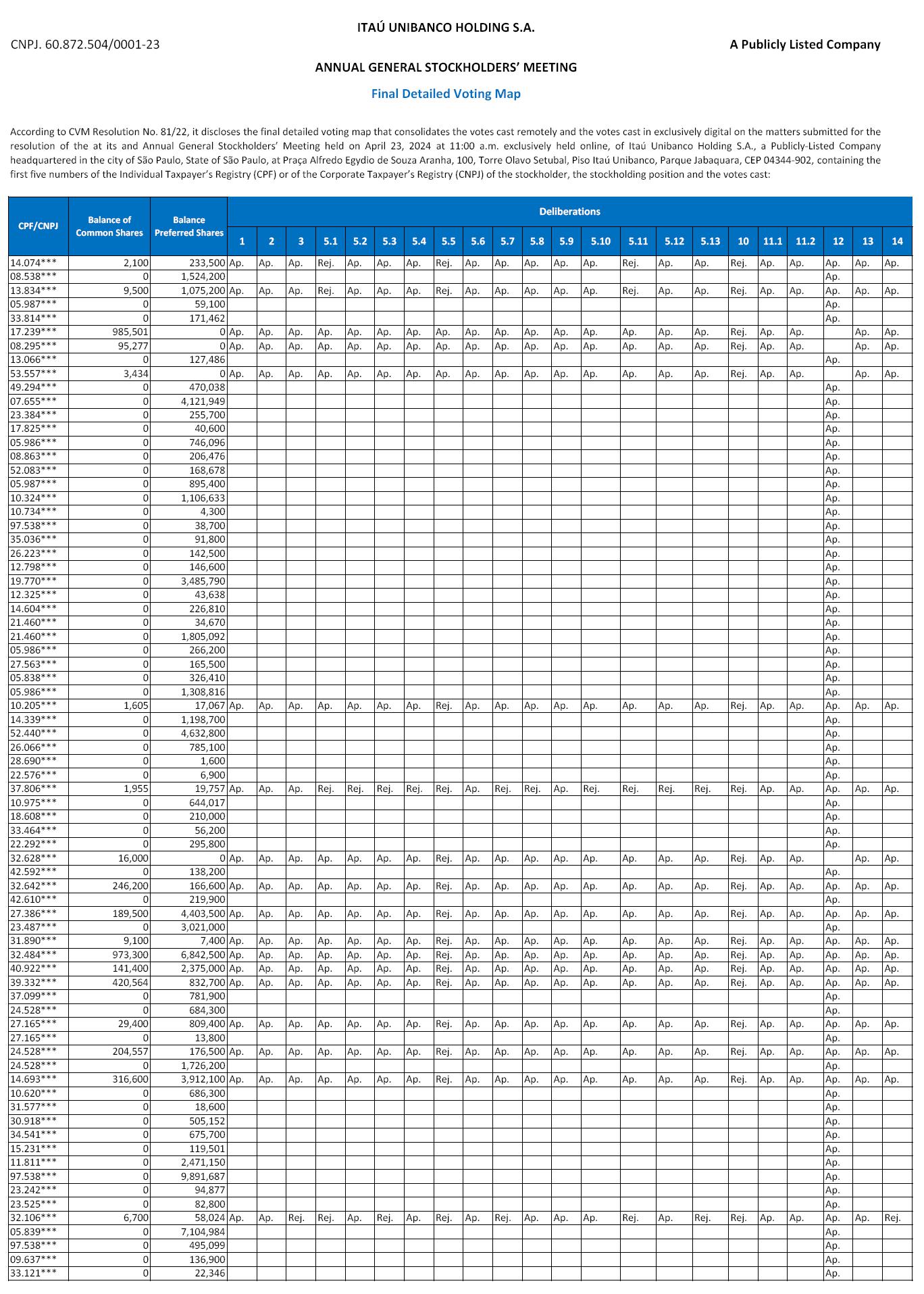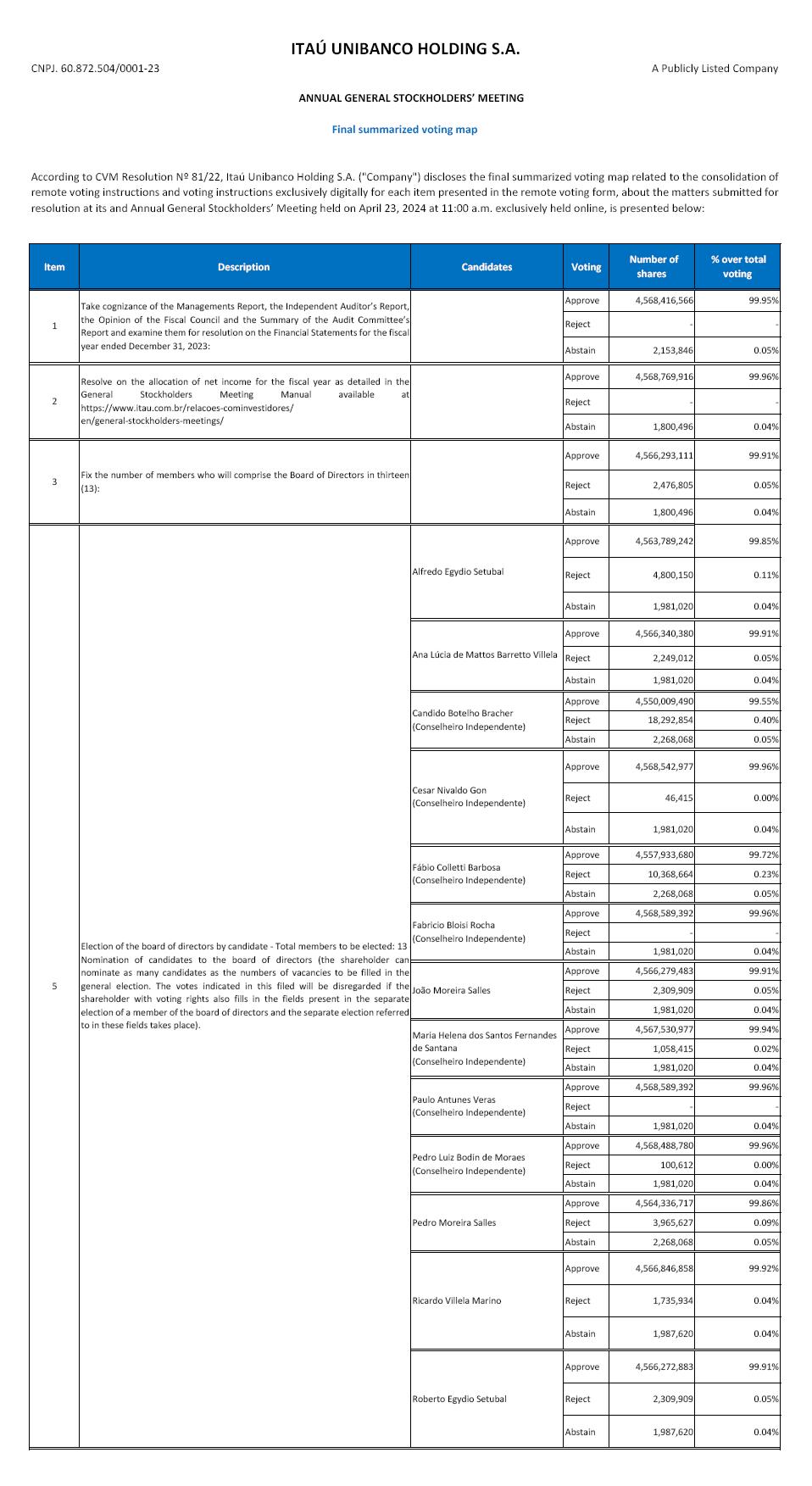 SUMMARIZED MINUTES OF THE ANNUAL GENERAL STOCKHOLDERS’ MEETING OF APRIL 23, 2024