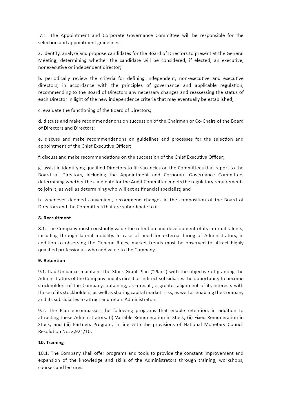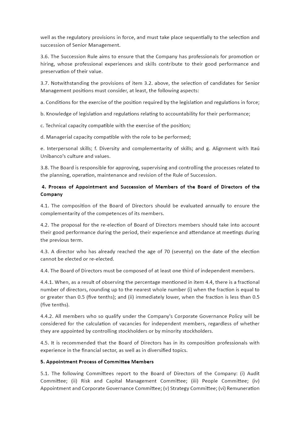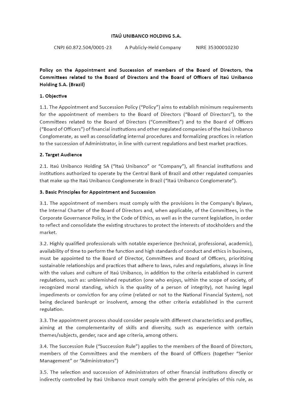 Policy on the Appointment and Succession of members of the Board of Directors, the Committees related to the Board of Directors and the Board of Officers of Itaú Unibanco Holding S.A.