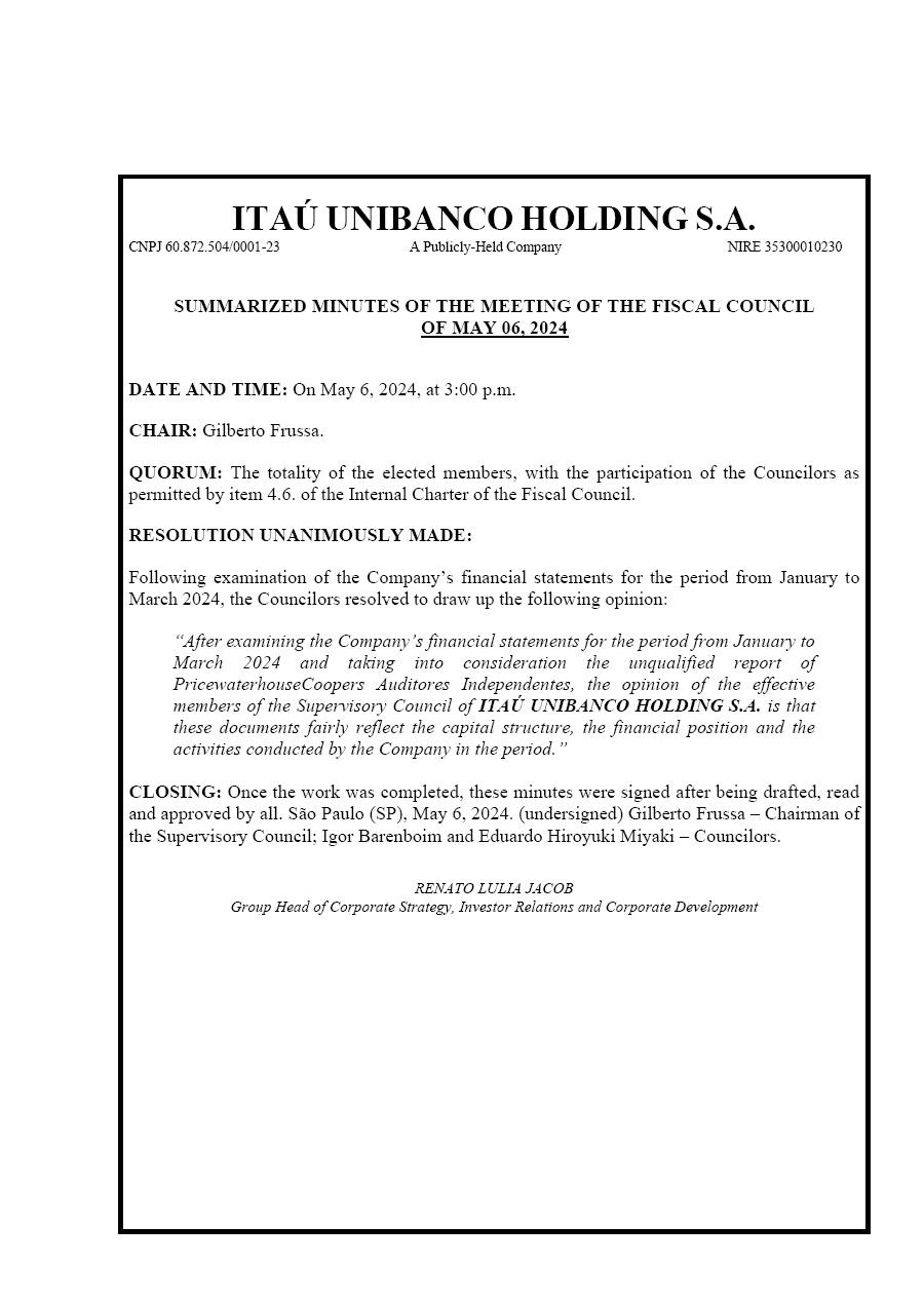 SUMMARIZED MINUTES OF THE MEETING OF THE FISCAL COUNCIL OF MAY 6, 2024