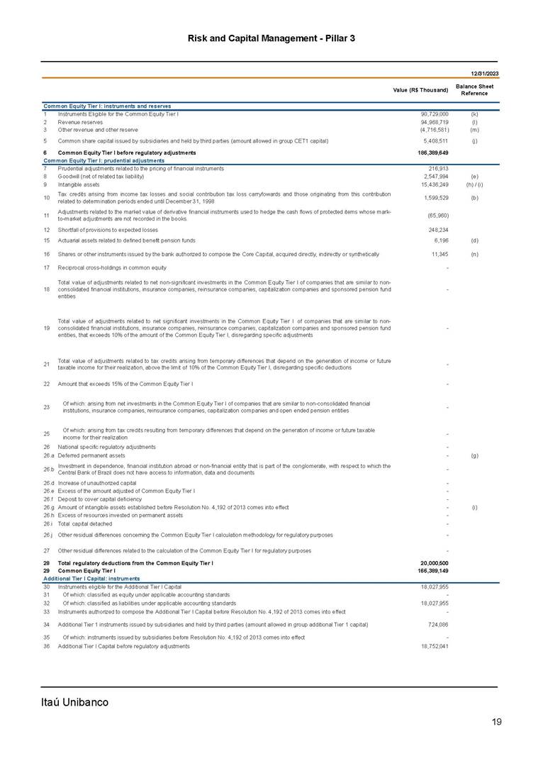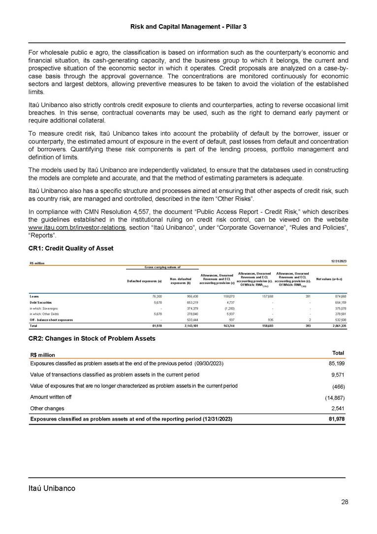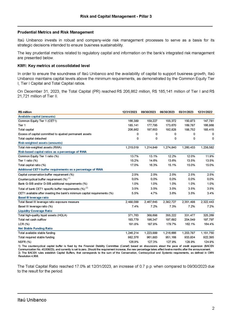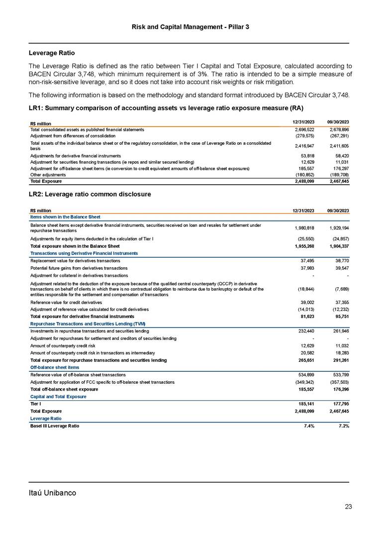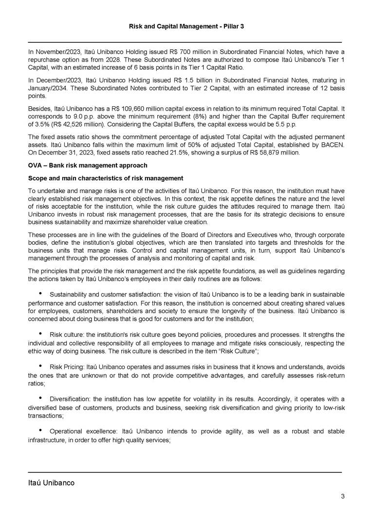 Announcement to the Market – Risk And Capital Management Pillar 3 – 4Q23