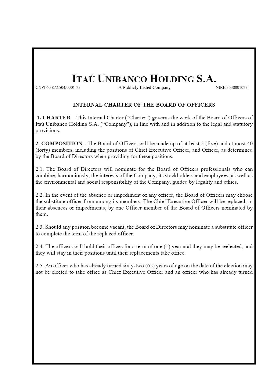 INTERNAL CHARTER OF THE BOARD OF OFFICERS