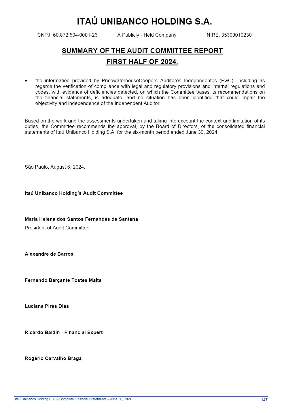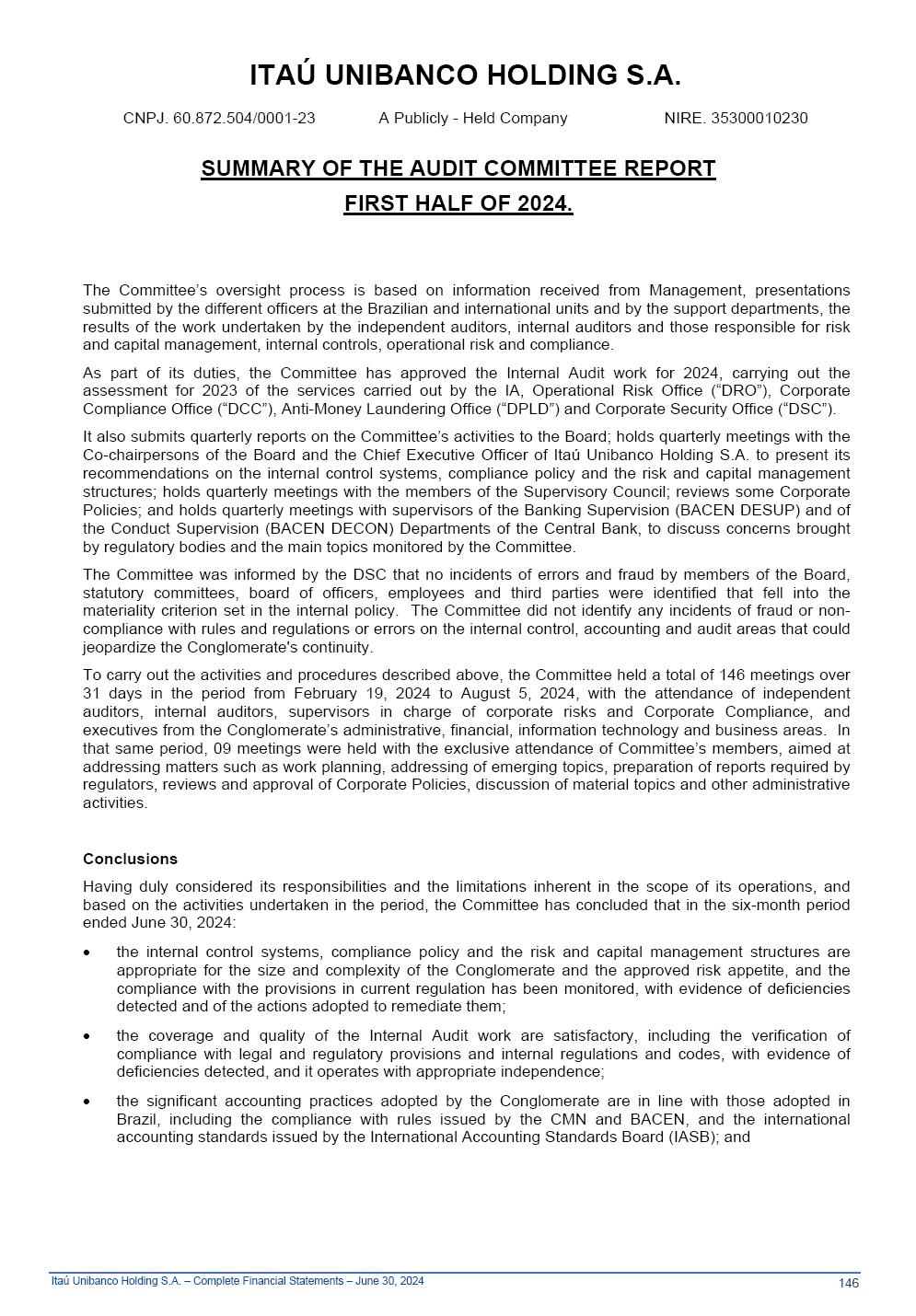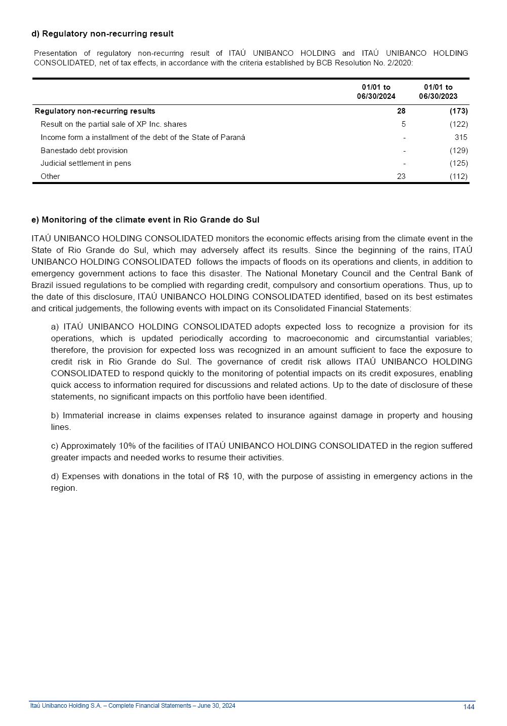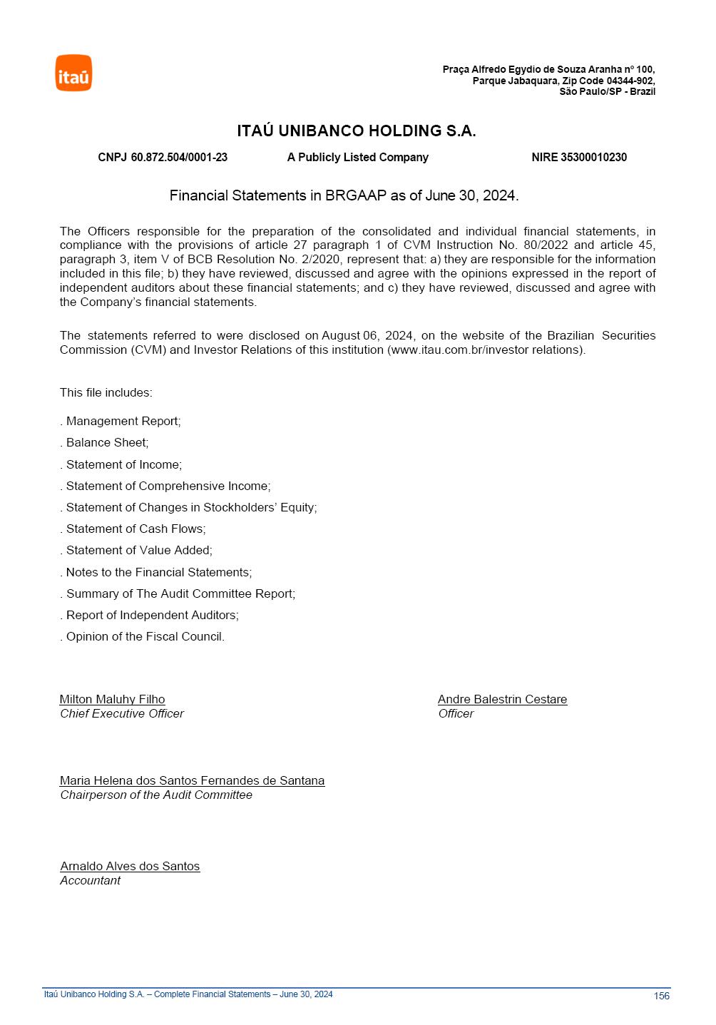 ITAÚ UNIBANCO – MANAGEMENT DISCUSSION & ANALYSIS AND COMPLETE FINANCIAL STATEMENTS – JUNE, 2024