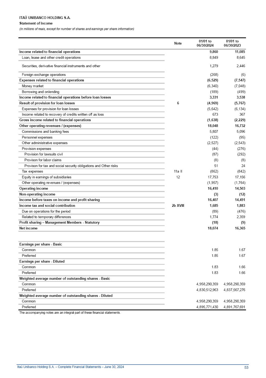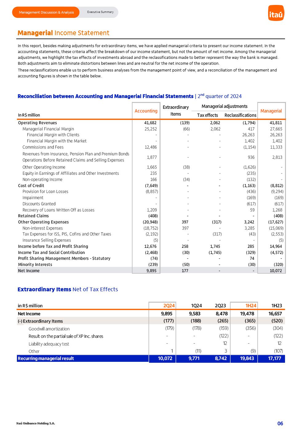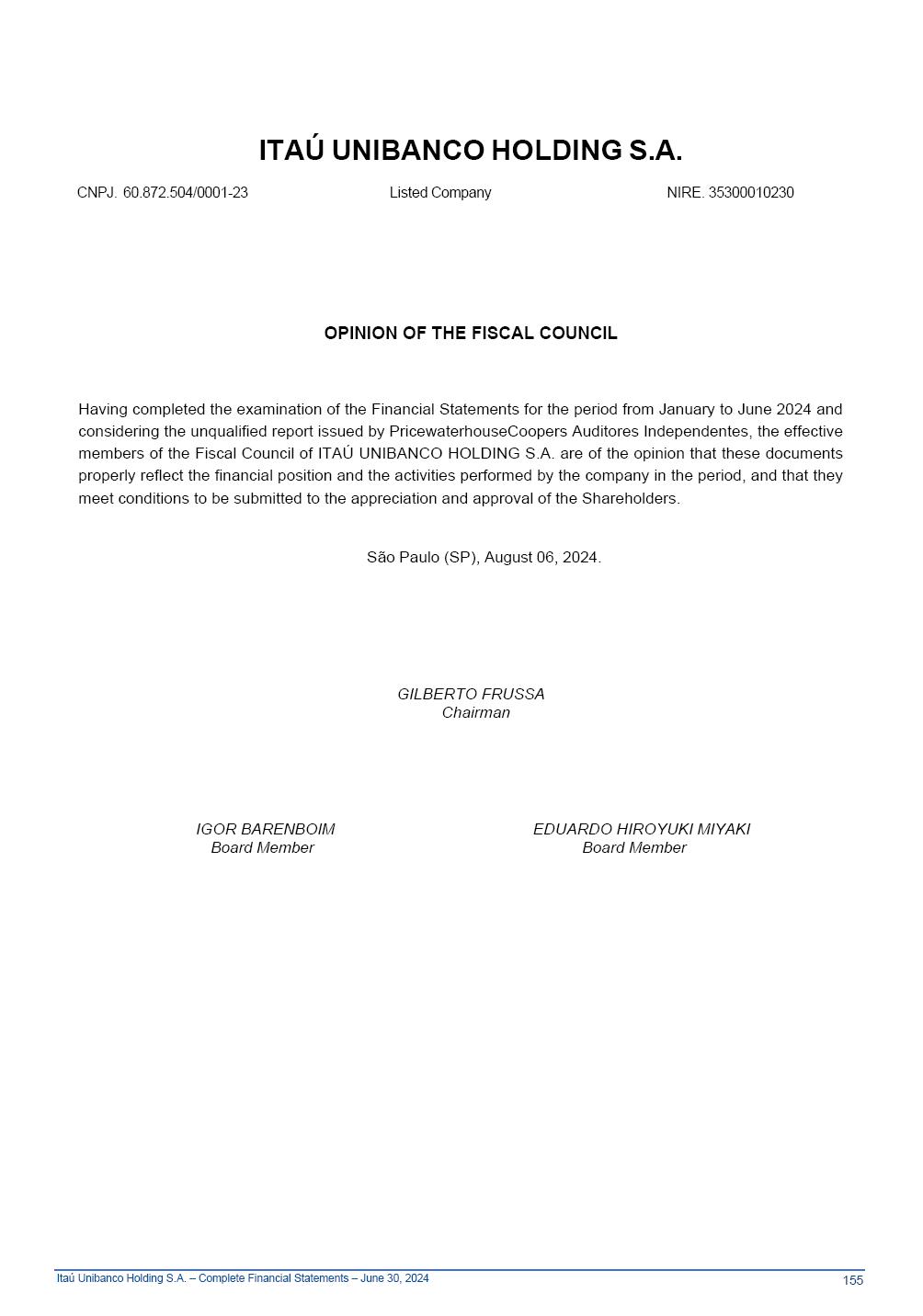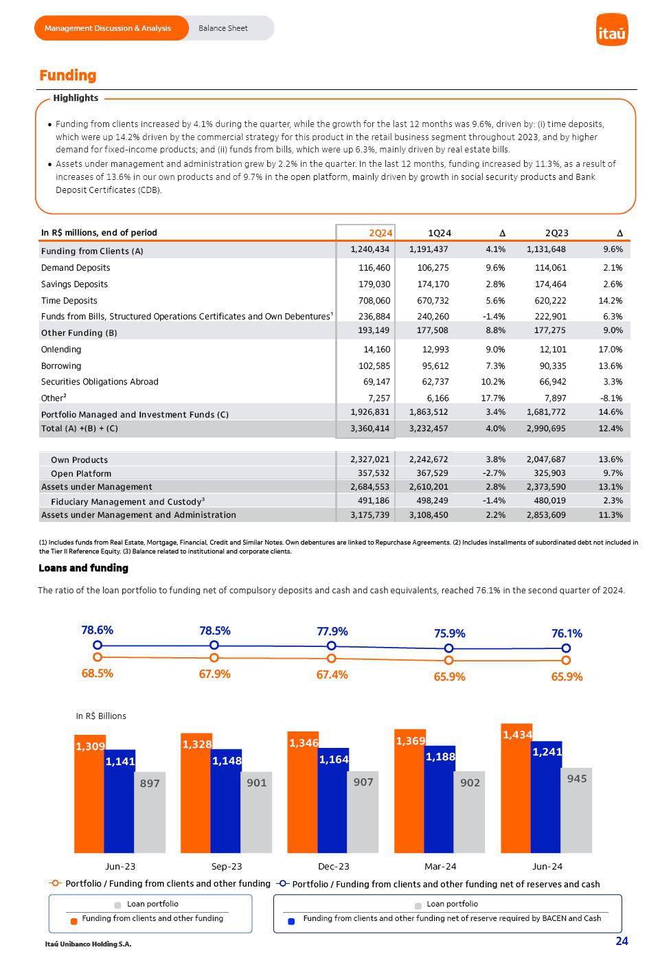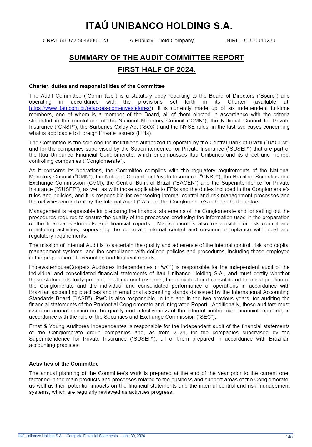 ITAÚ UNIBANCO – MANAGEMENT DISCUSSION & ANALYSIS AND COMPLETE FINANCIAL STATEMENTS – JUNE, 2024