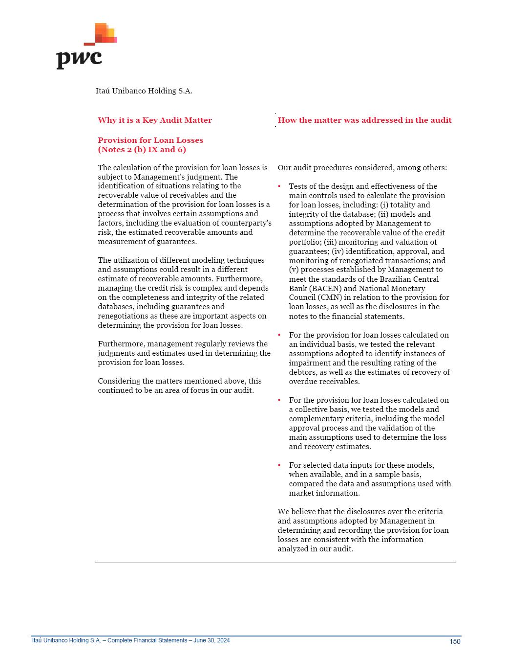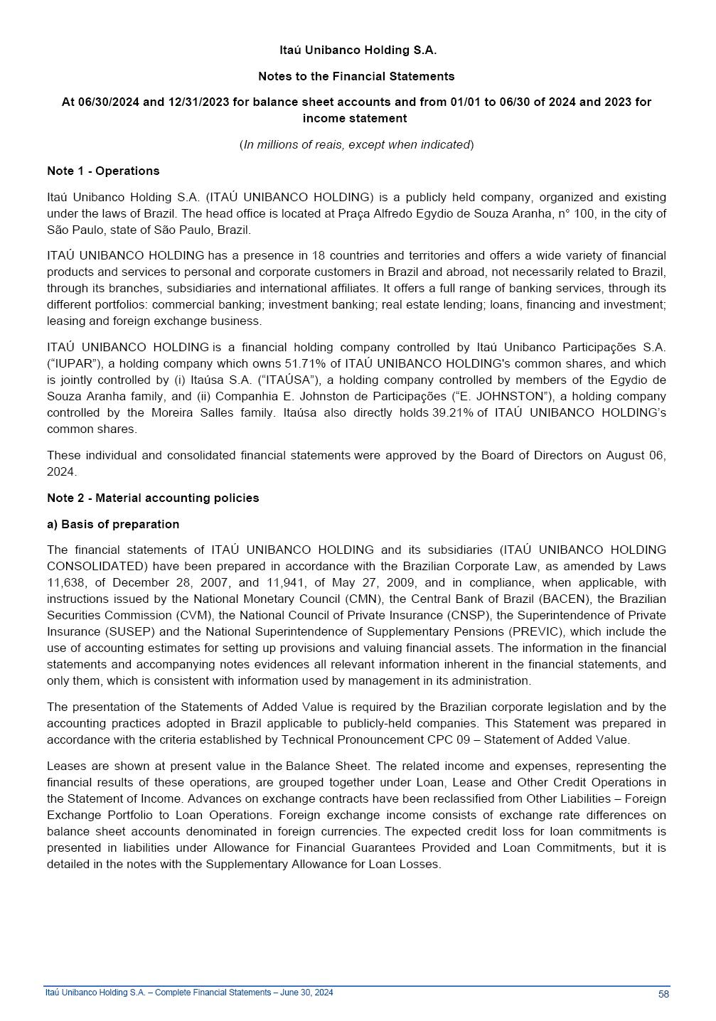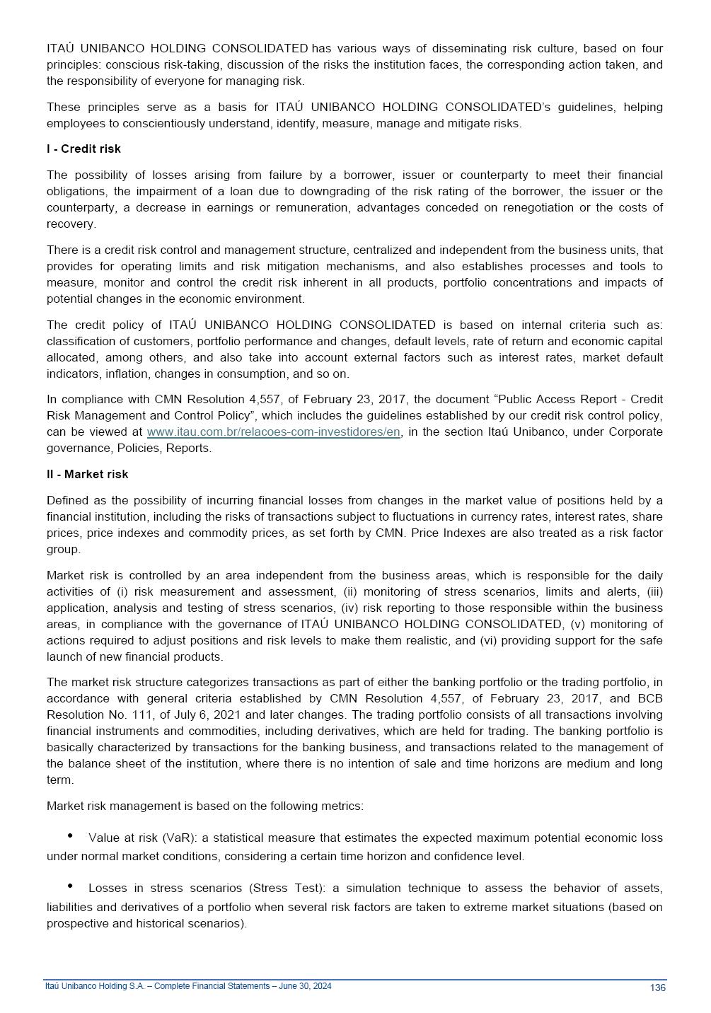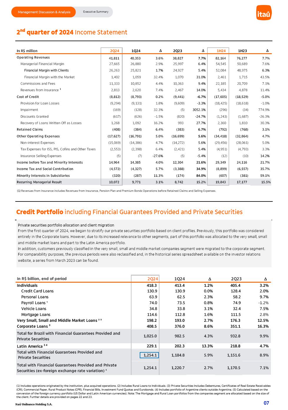 ITAÚ UNIBANCO – MANAGEMENT DISCUSSION & ANALYSIS AND COMPLETE FINANCIAL STATEMENTS – JUNE, 2024