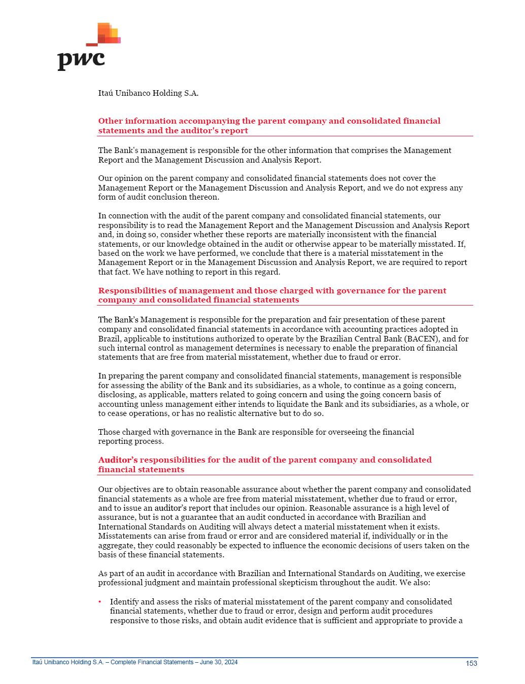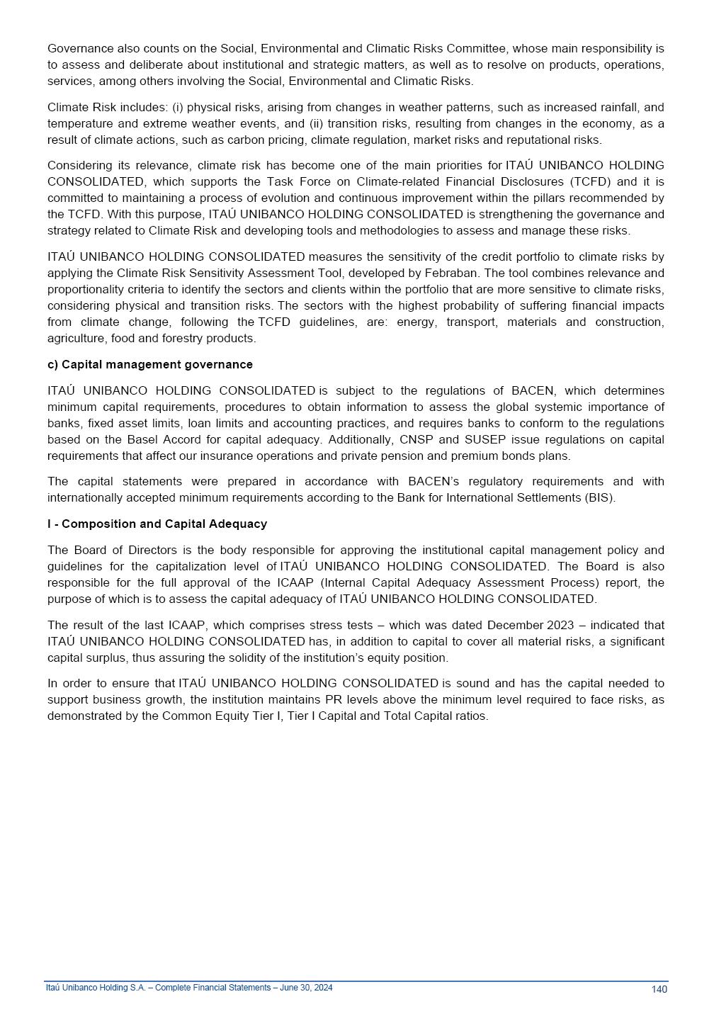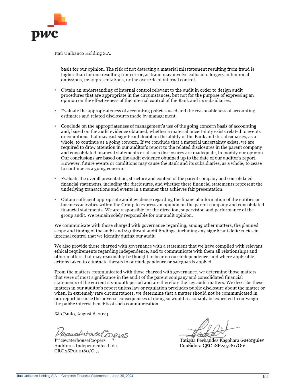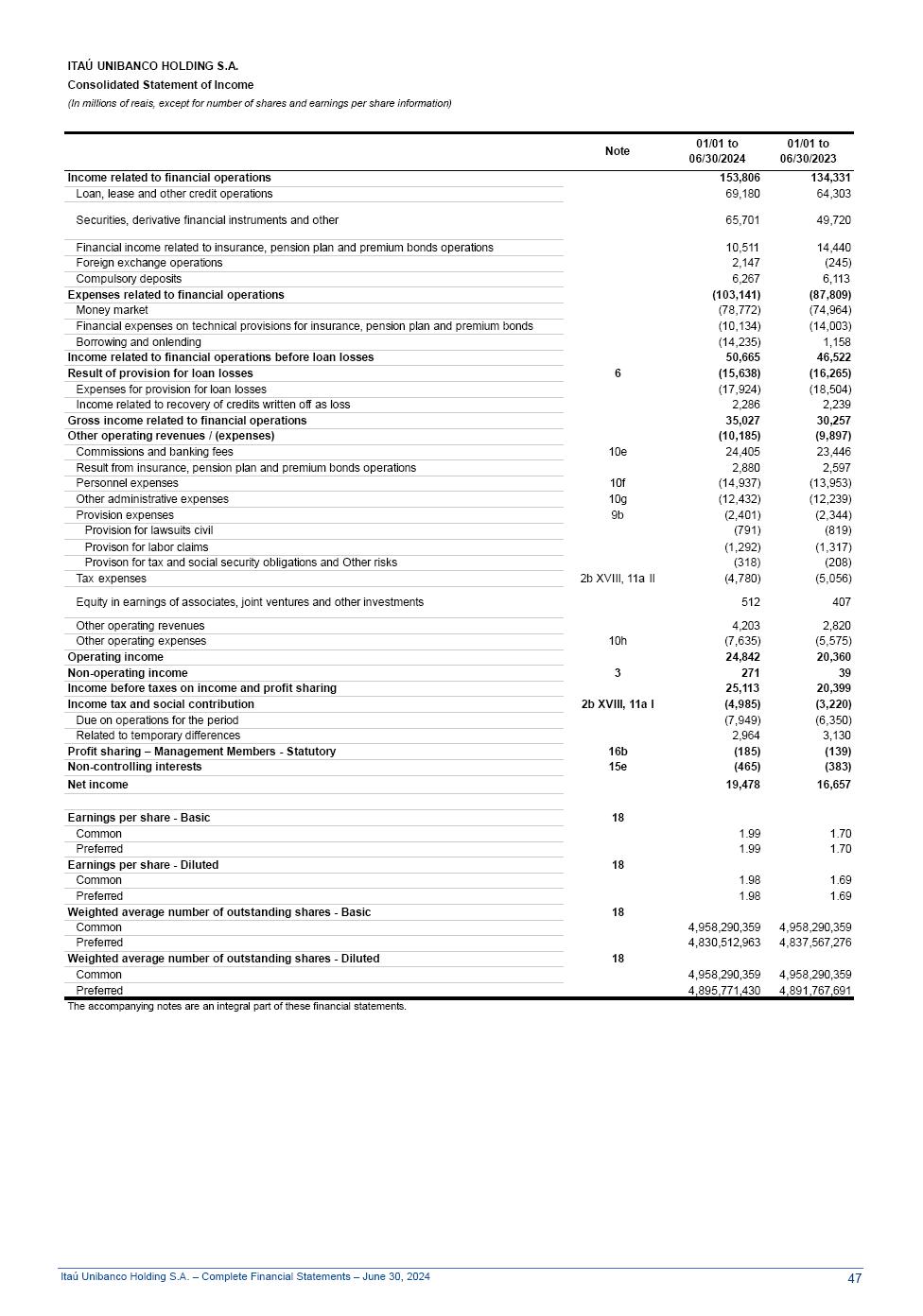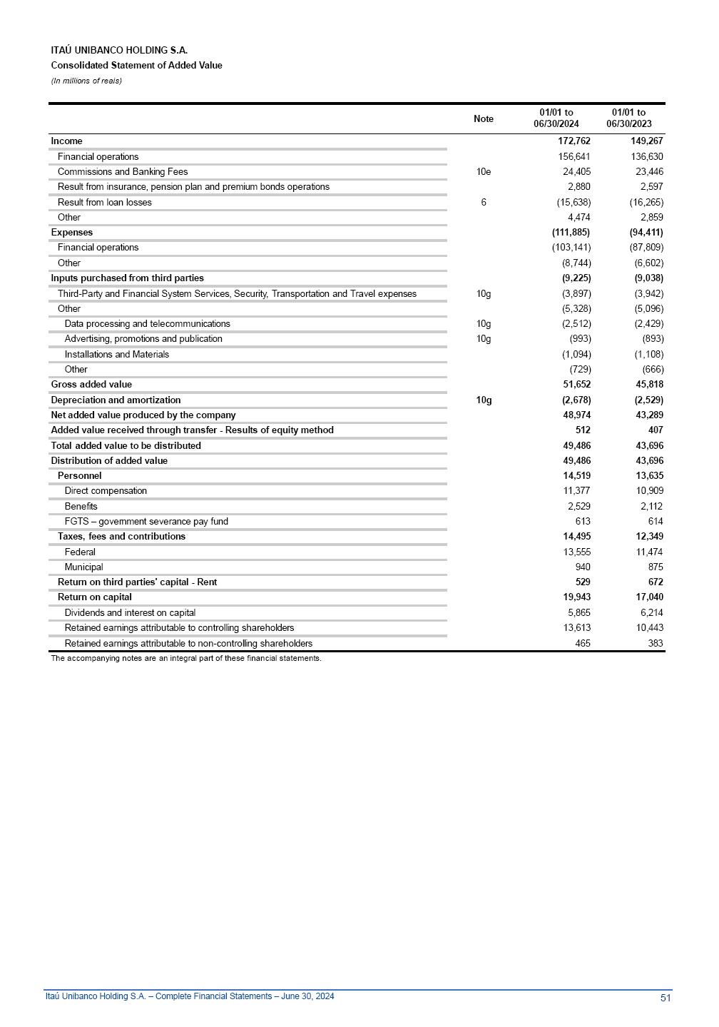 ITAÚ UNIBANCO – MANAGEMENT DISCUSSION & ANALYSIS AND COMPLETE FINANCIAL STATEMENTS – JUNE, 2024