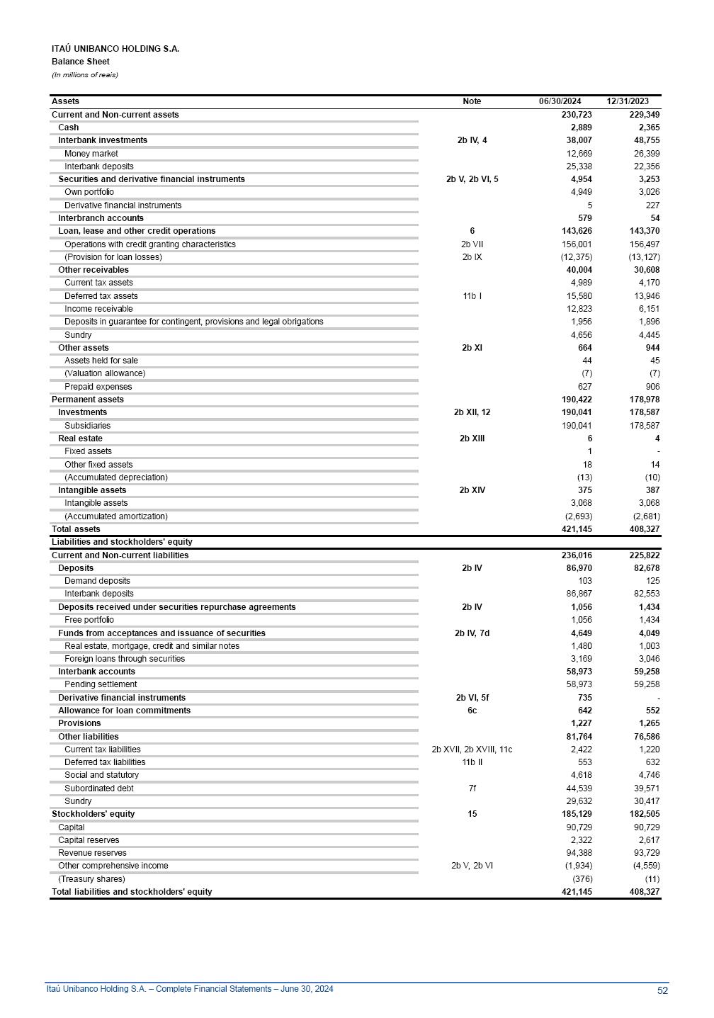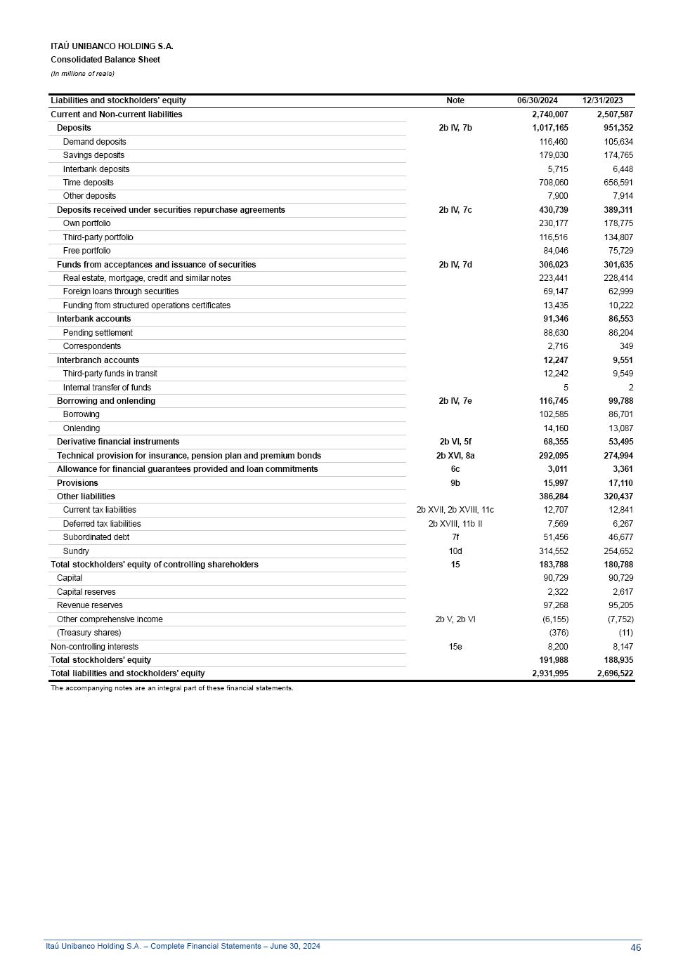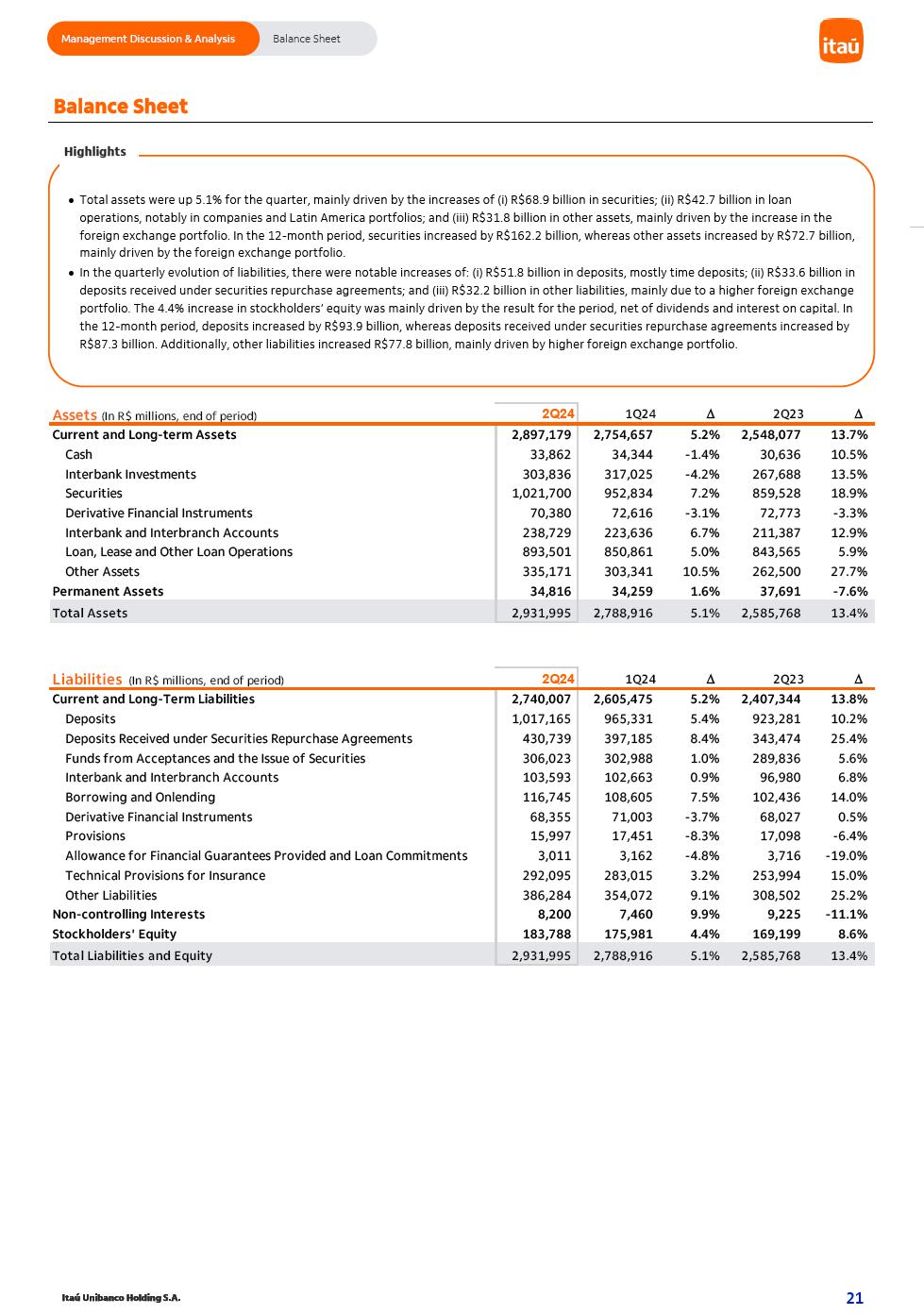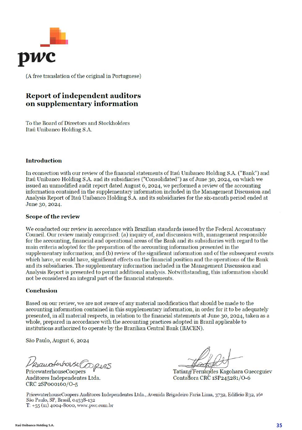 ITAÚ UNIBANCO – MANAGEMENT DISCUSSION & ANALYSIS AND COMPLETE FINANCIAL STATEMENTS – JUNE, 2024