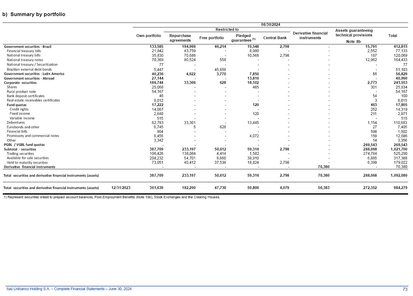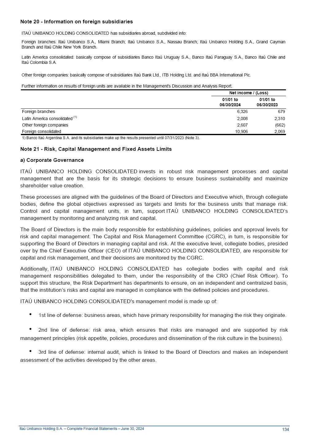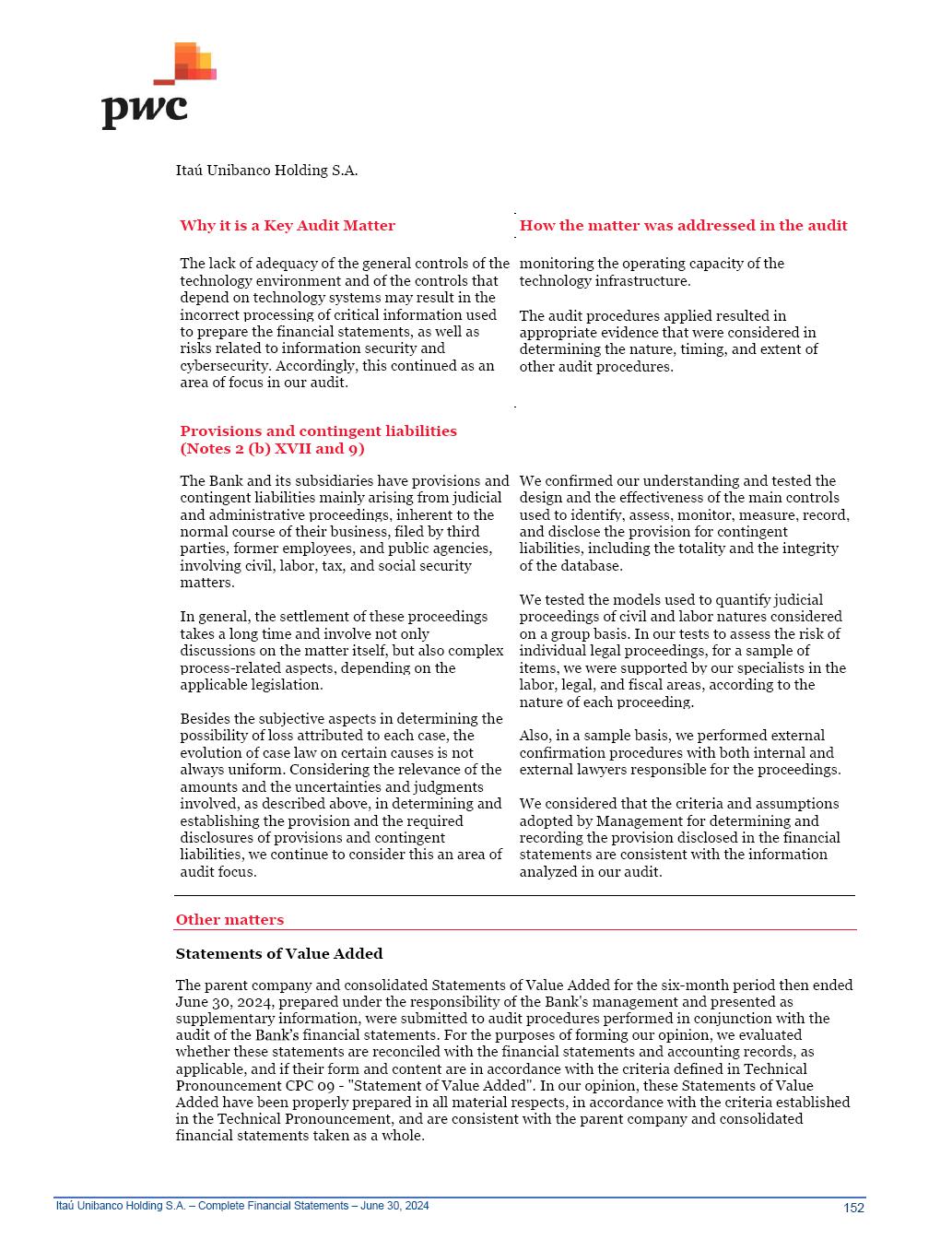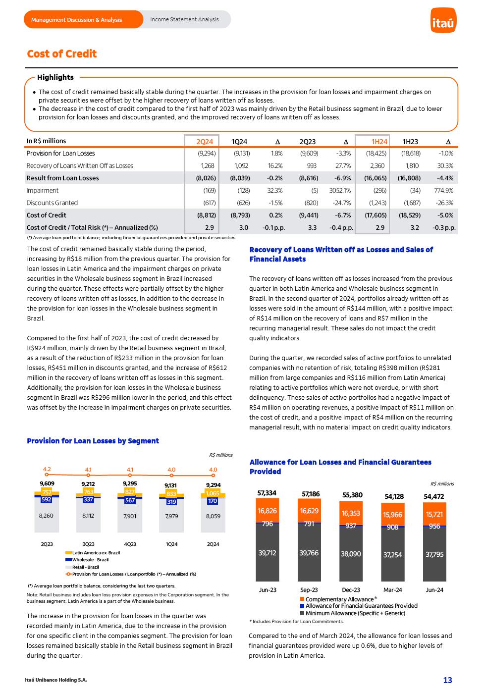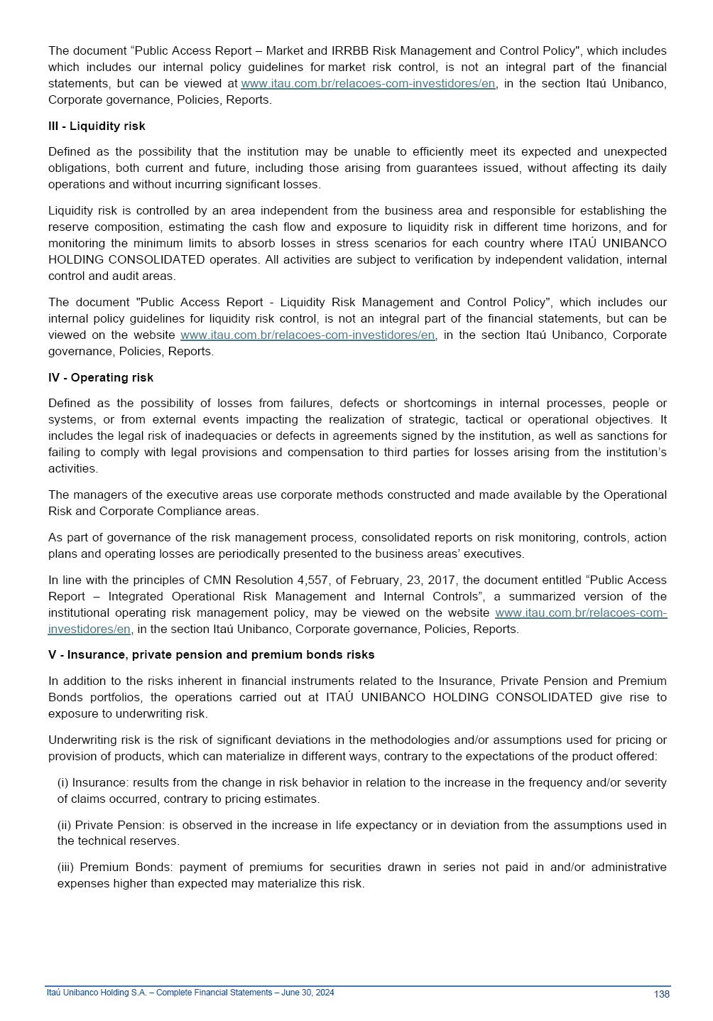ITAÚ UNIBANCO – MANAGEMENT DISCUSSION & ANALYSIS AND COMPLETE FINANCIAL STATEMENTS – JUNE, 2024