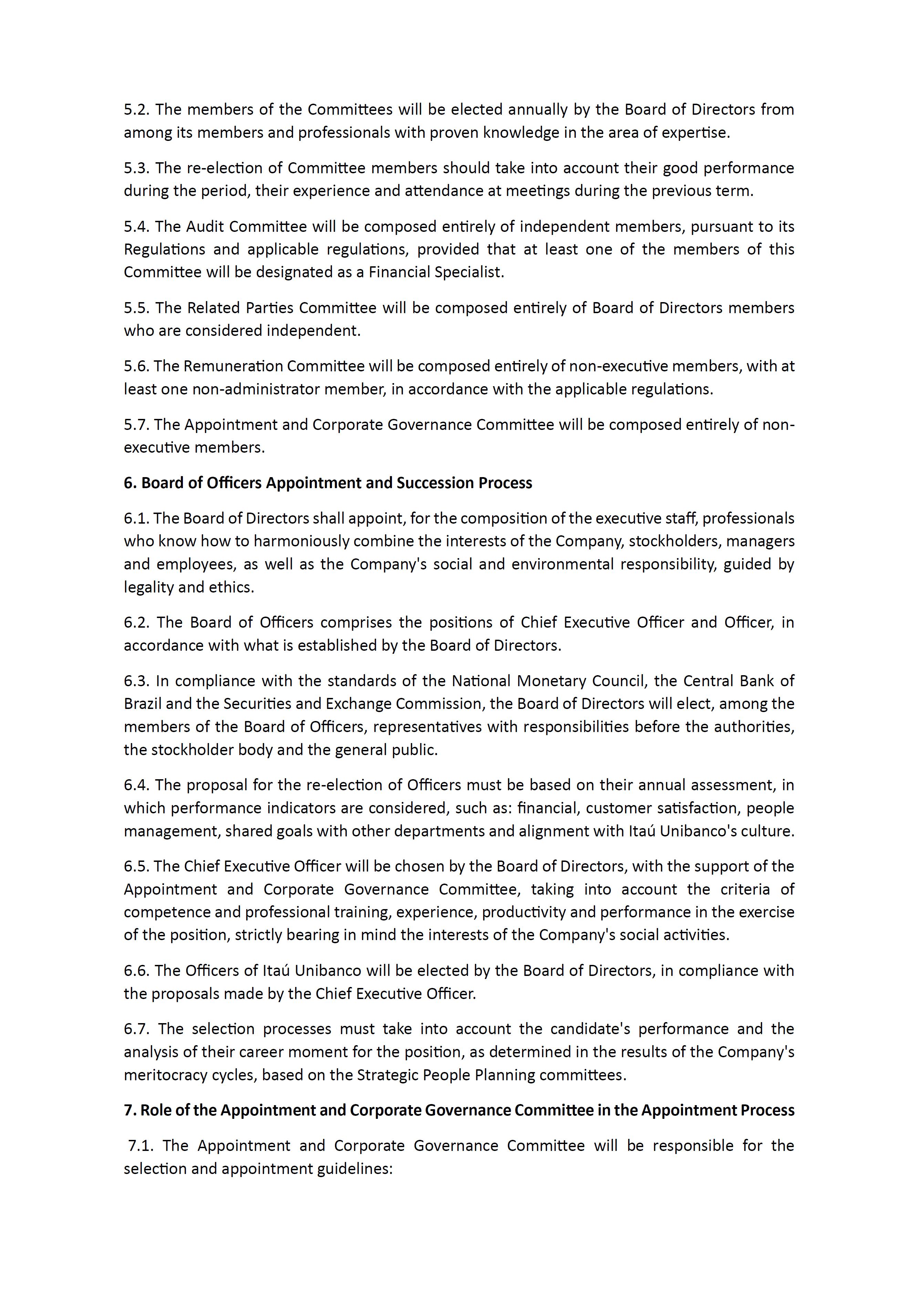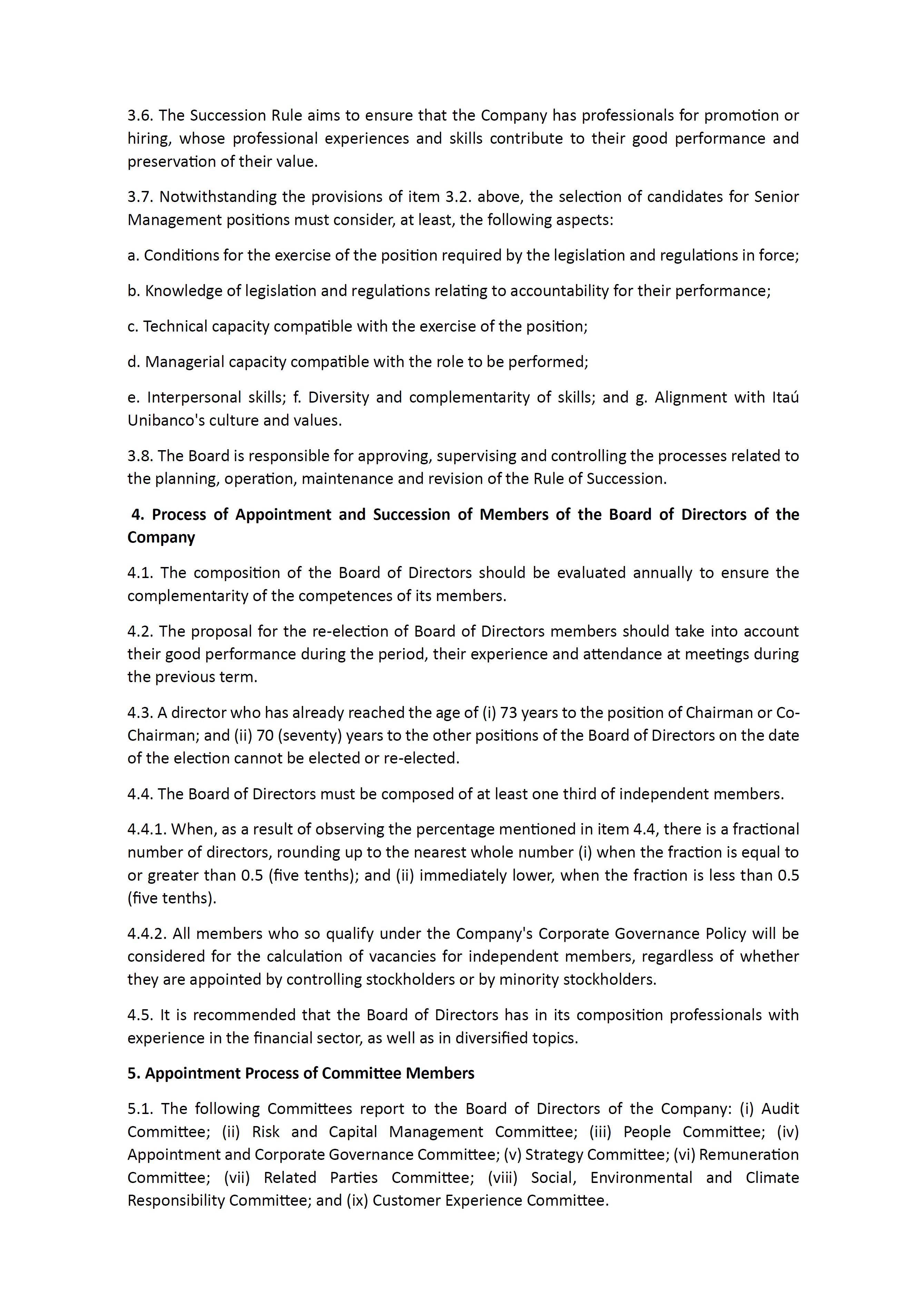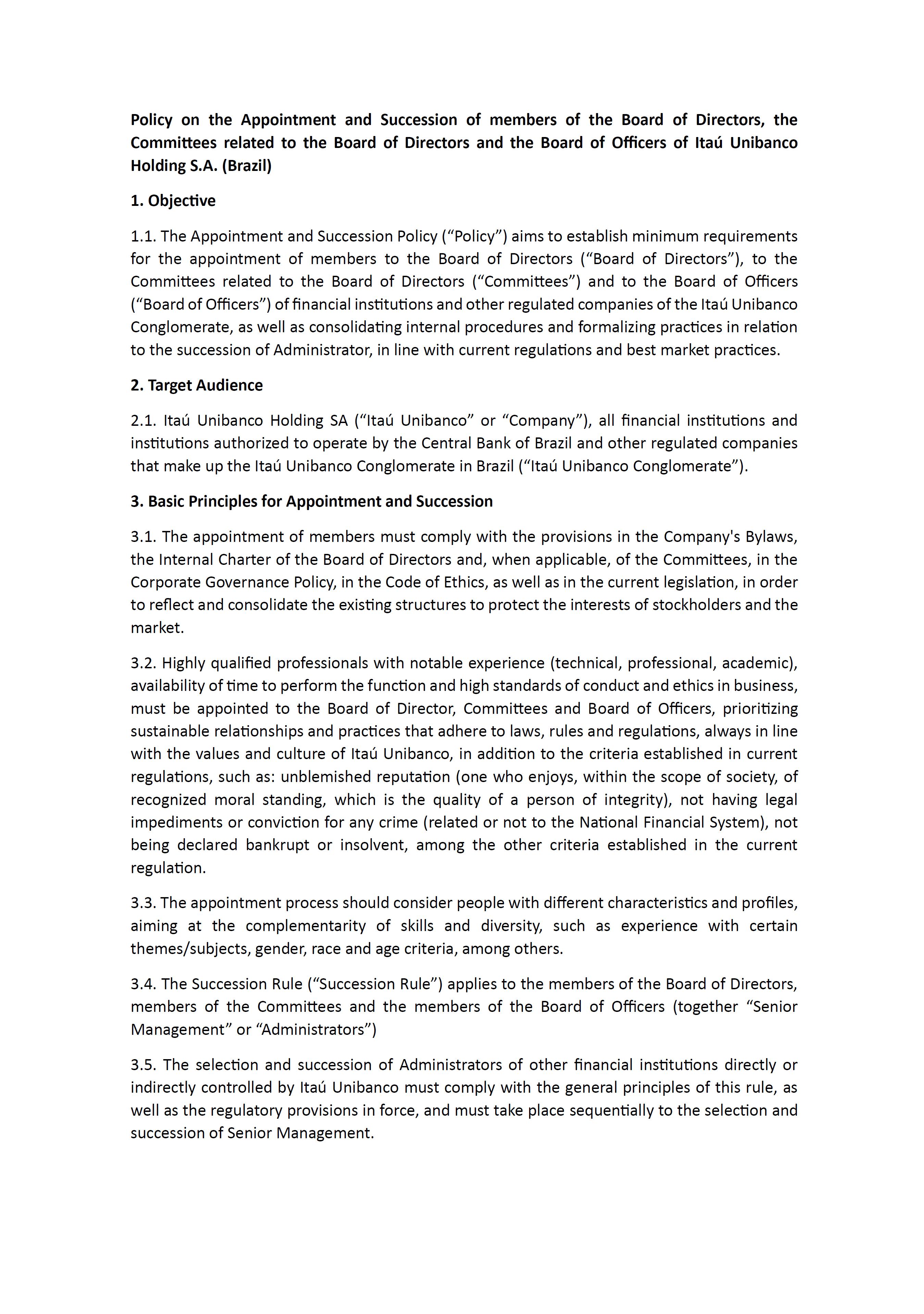 Policy on the Appointment and Succession of members of the Board of Directors, the Committees related to the Board of Directors and the Board of Officers of Itaú Unibanco Holding S.A.