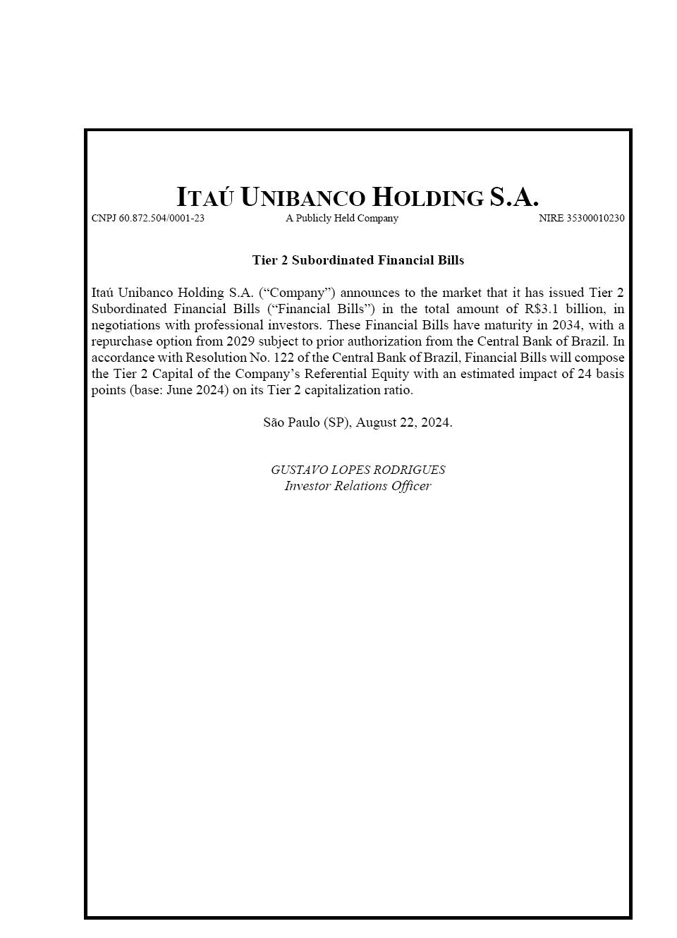 Tier 2 Subordinated Financial Bills
