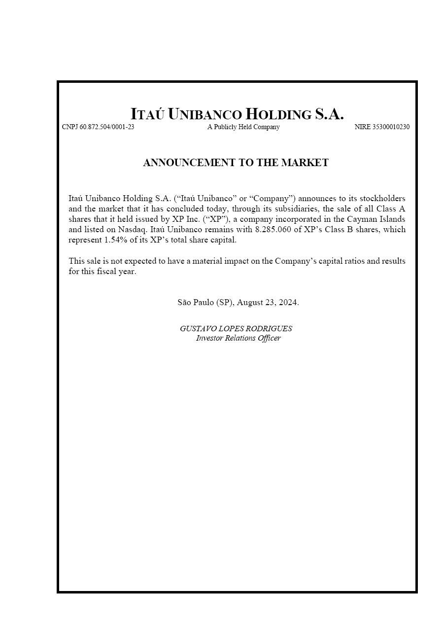 Announcement to the market: Sale of XP´s Class A Shares