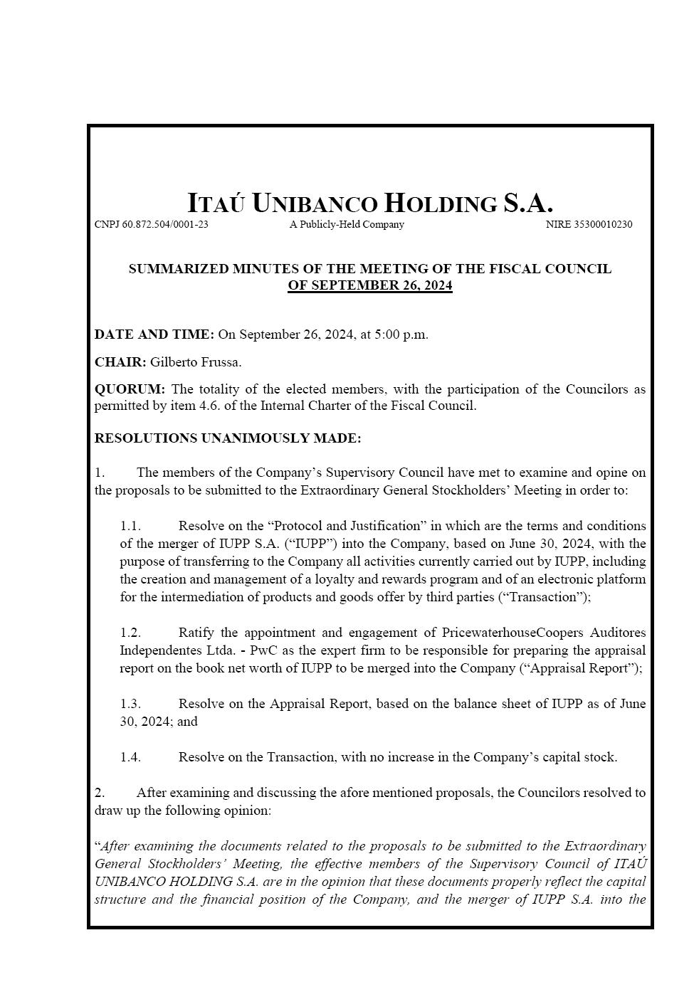 SUMMARIZED MINUTES OF THE MEETING OF THE FISCAL COUNCIL OF SEPTEMBER 26, 2024