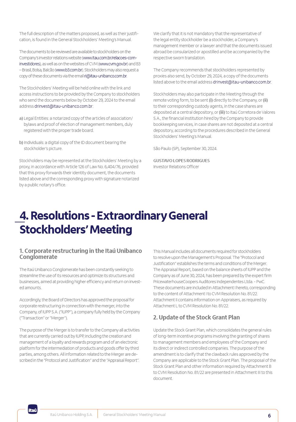 GENERAL STOCKHOLDERS’ MEETING MANUAL EXTRAORDINARY GENERAL STOCKHOLDERS’ MEETING - OCTOBER 31, 2024