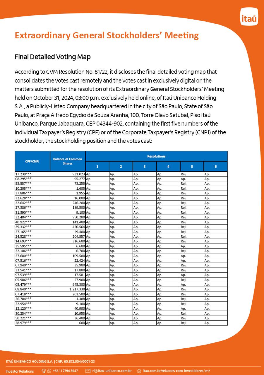 FINAL DETAILED VOTING MAP - EXTRAORDINARY GENERAL STOCKHOLDERS’ MEETING OF OCTOBER 31, 2024