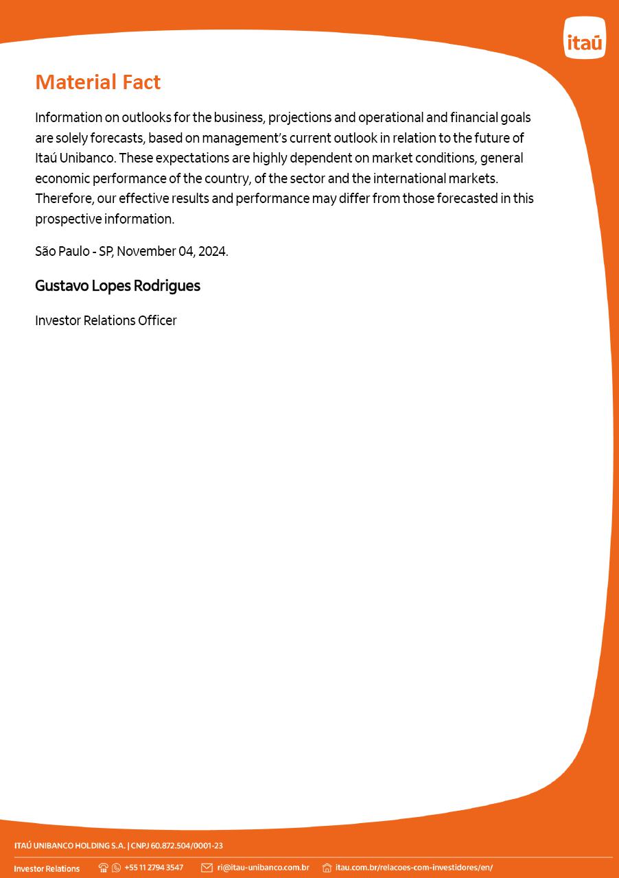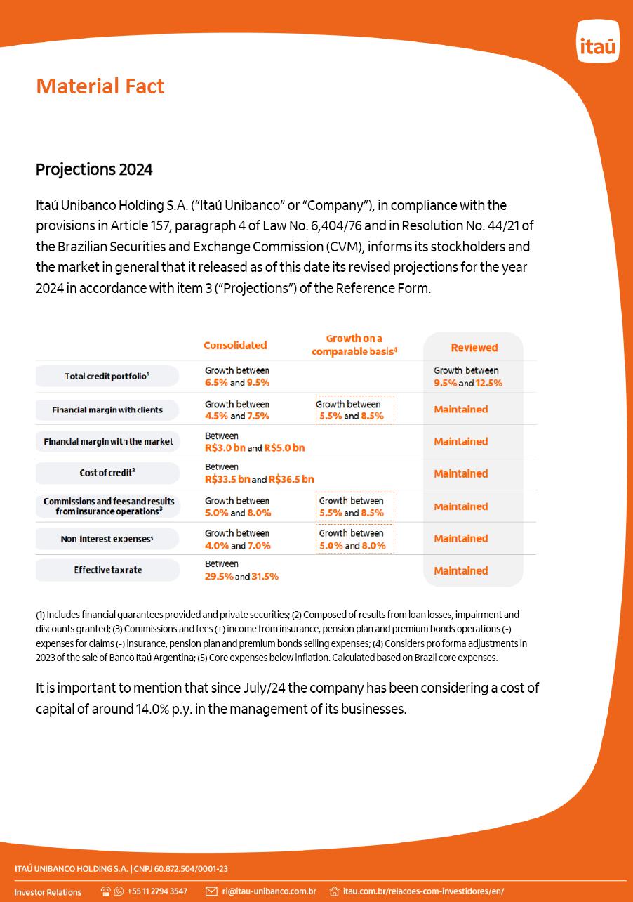 ITAÚ UNIBANCO – MATERIAL FACT: PROJECTIONS