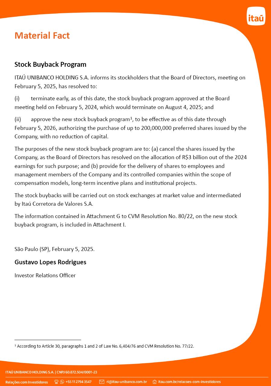 MATERIAL FACT: STOCK BUYBACK PROGRAM