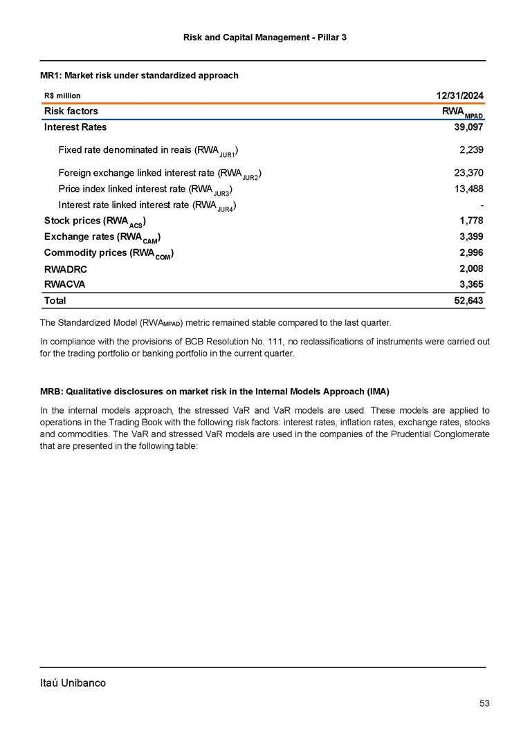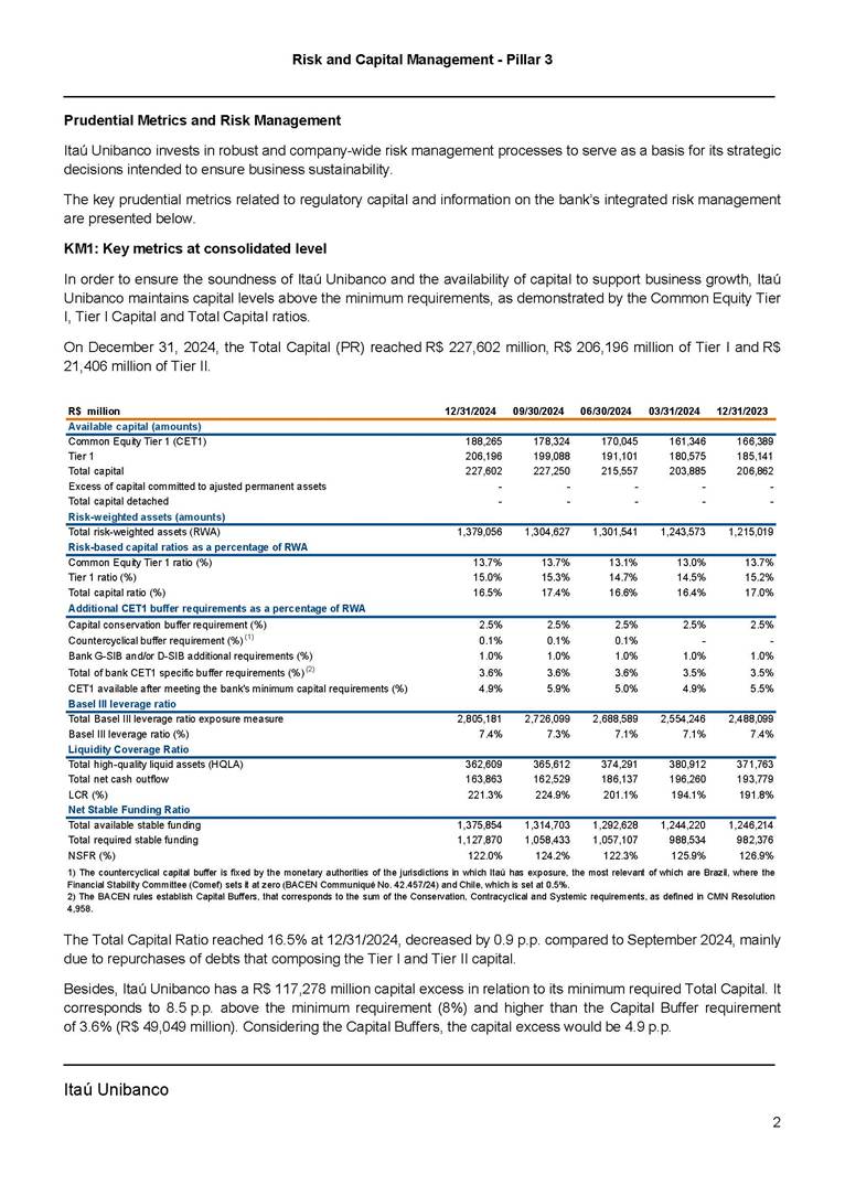 Announcement to the Market – Risk And Capital Management Pillar 3 – 4Q24