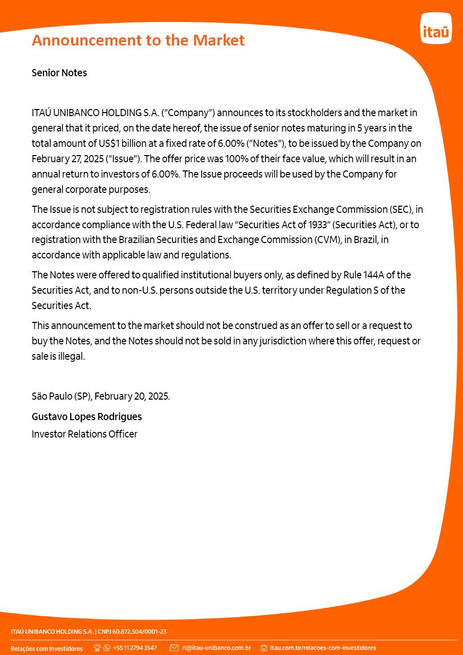 ANNOUNCEMENT TO THE MARKET - SENIOR NOTES