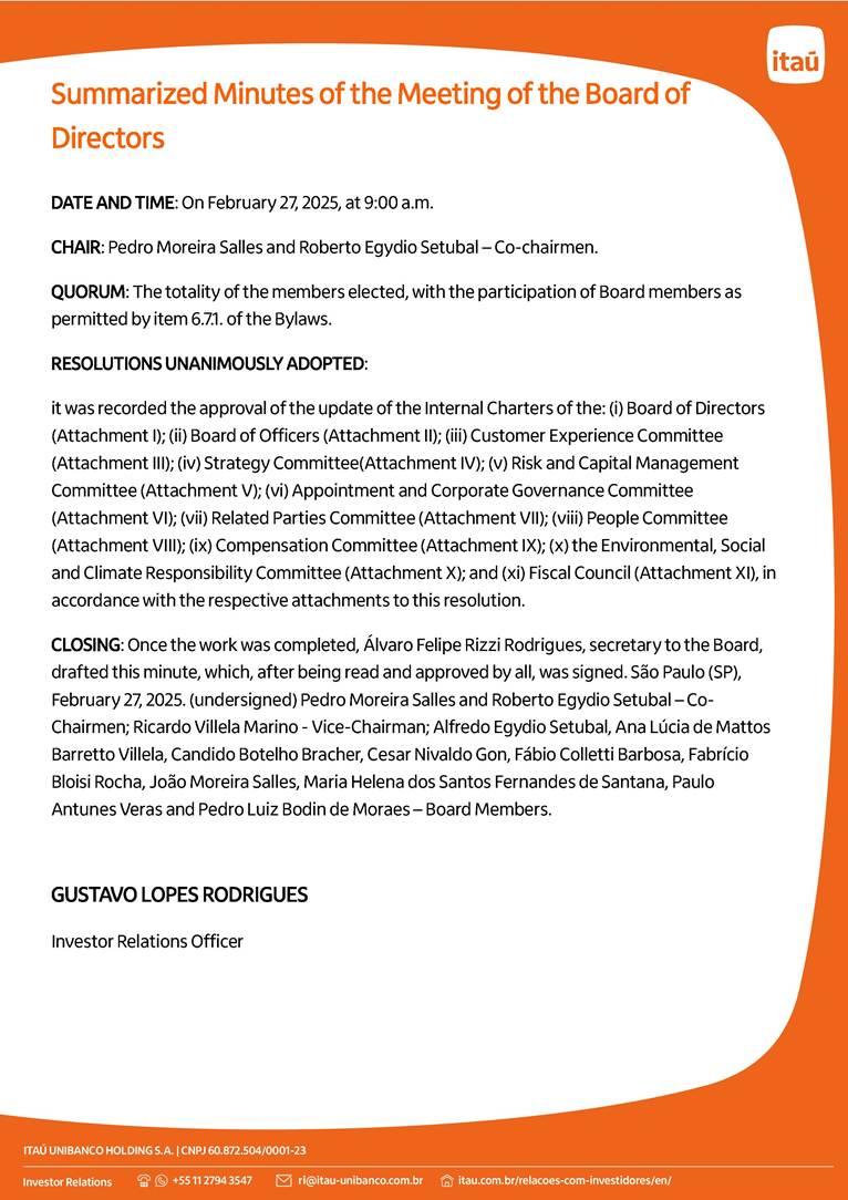 SUMMARIZED MINUTES OF THE MEETING OF THE BOARD OF DIRECTORS - FEBRUARY 27, 2025
