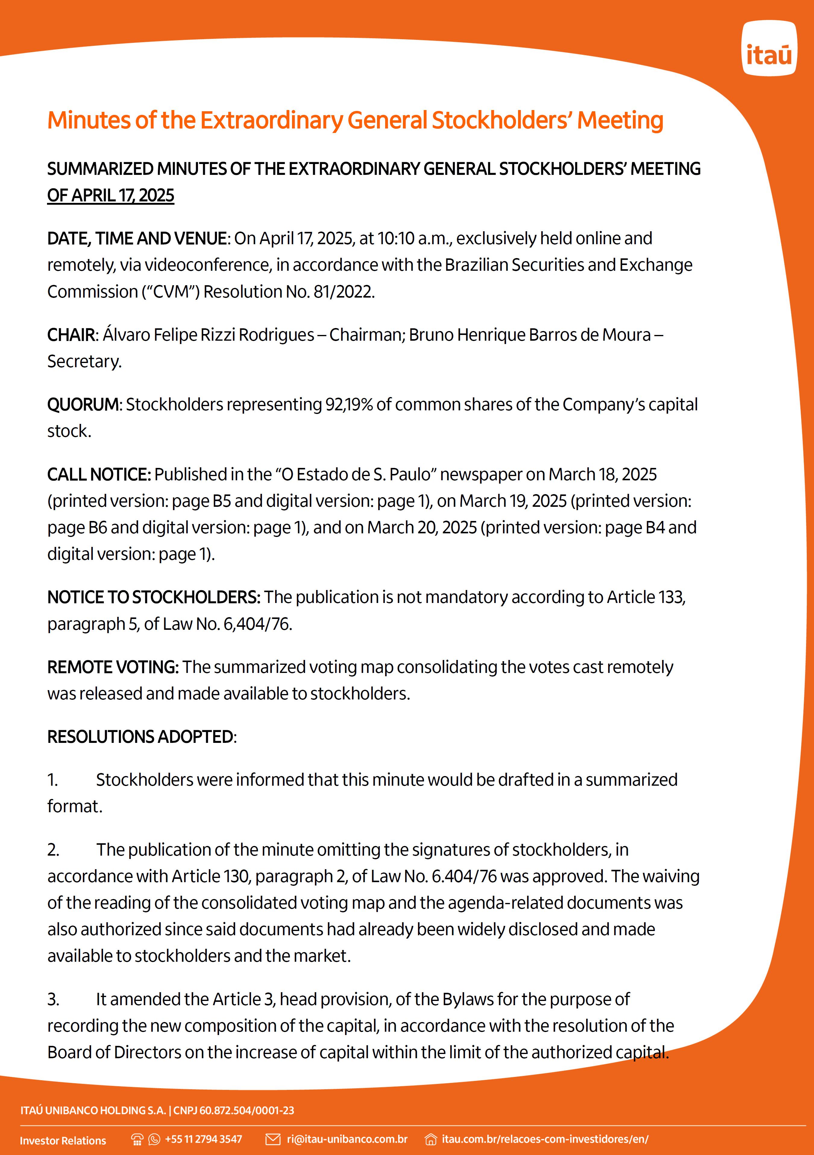 SUMMARIZED MINUTES OF THE EX