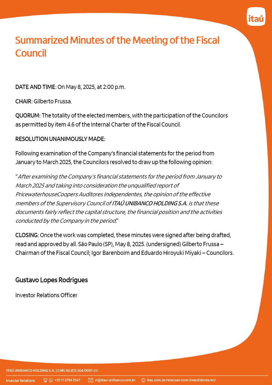 SUMMARIZED MINUTES OF THE MEETING OF THE FISCAL COUNCIL OF MAY 8, 2025