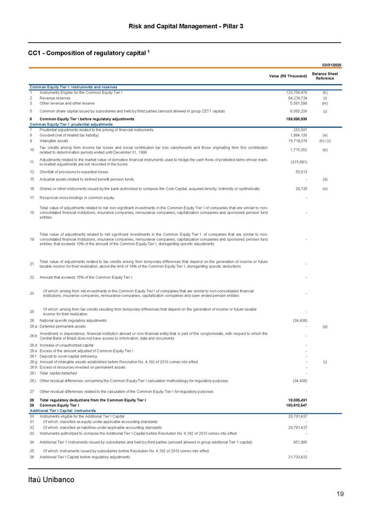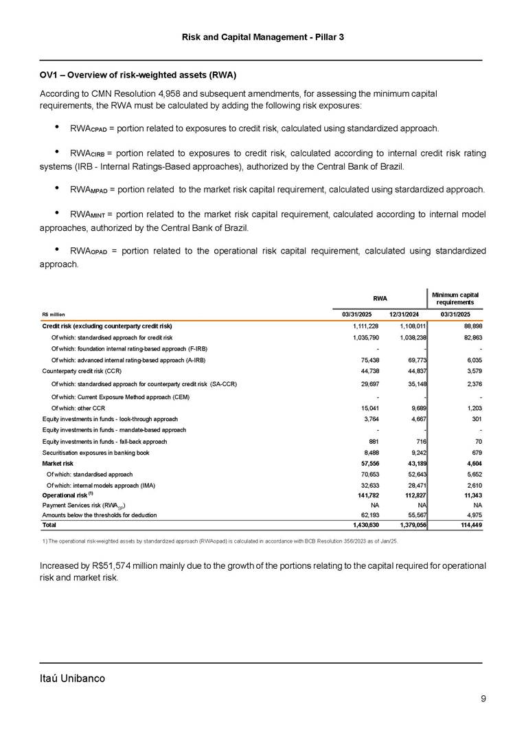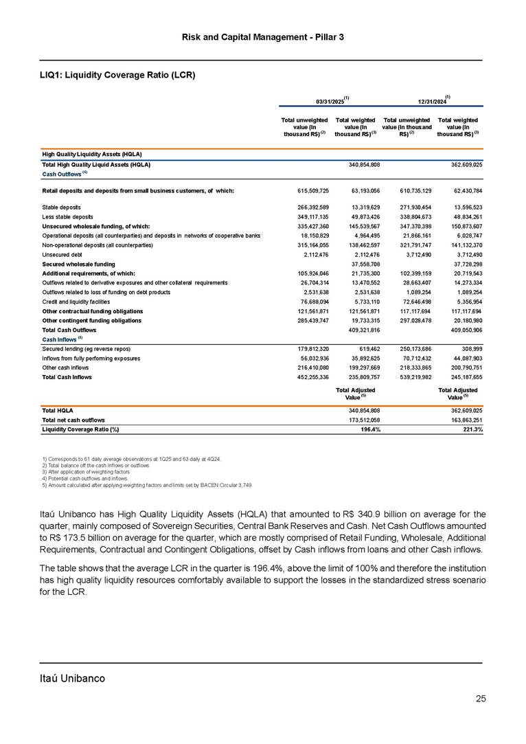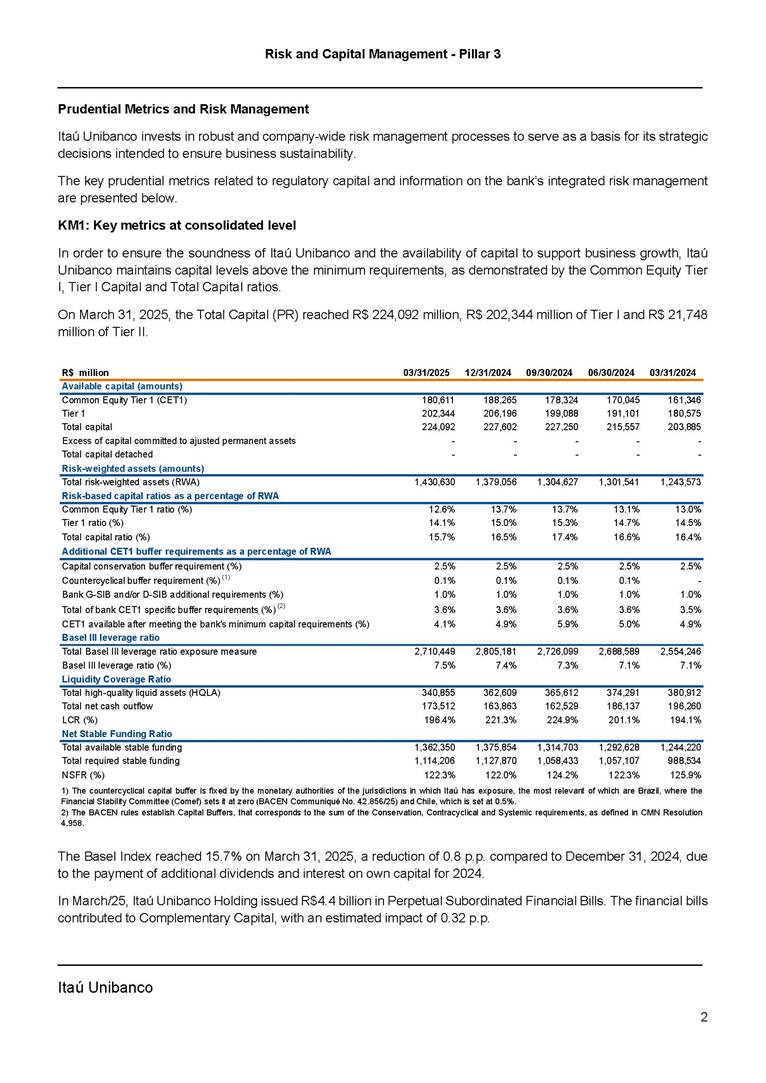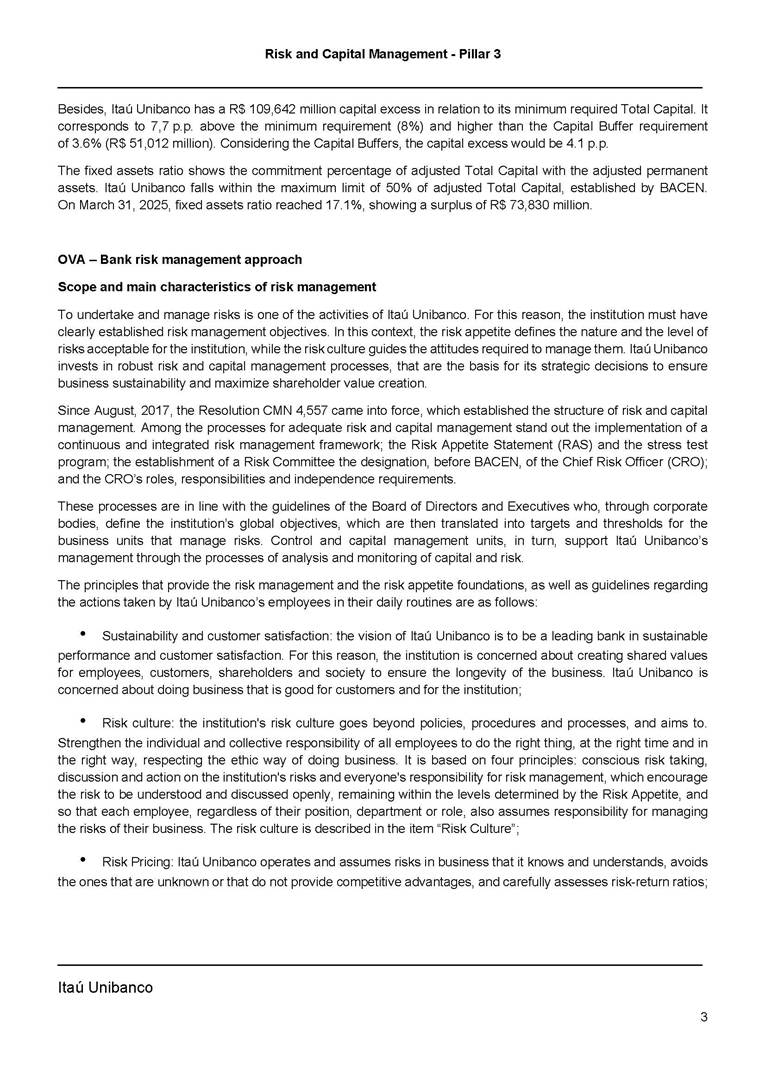 ANNOUNCEMENT TO THE MARKET – RISK AND CAPITAL MANAGEMENT PILLAR 3 – 1Q25